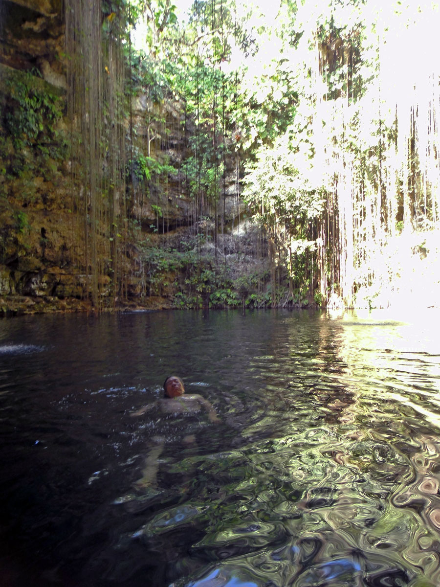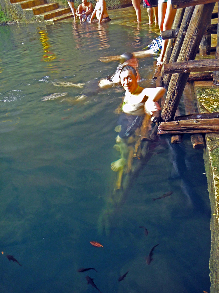 沢山の人が泳いでいる。 一寸泳いでみる、不思議な体験。 地下水脈のため水がきれい。
