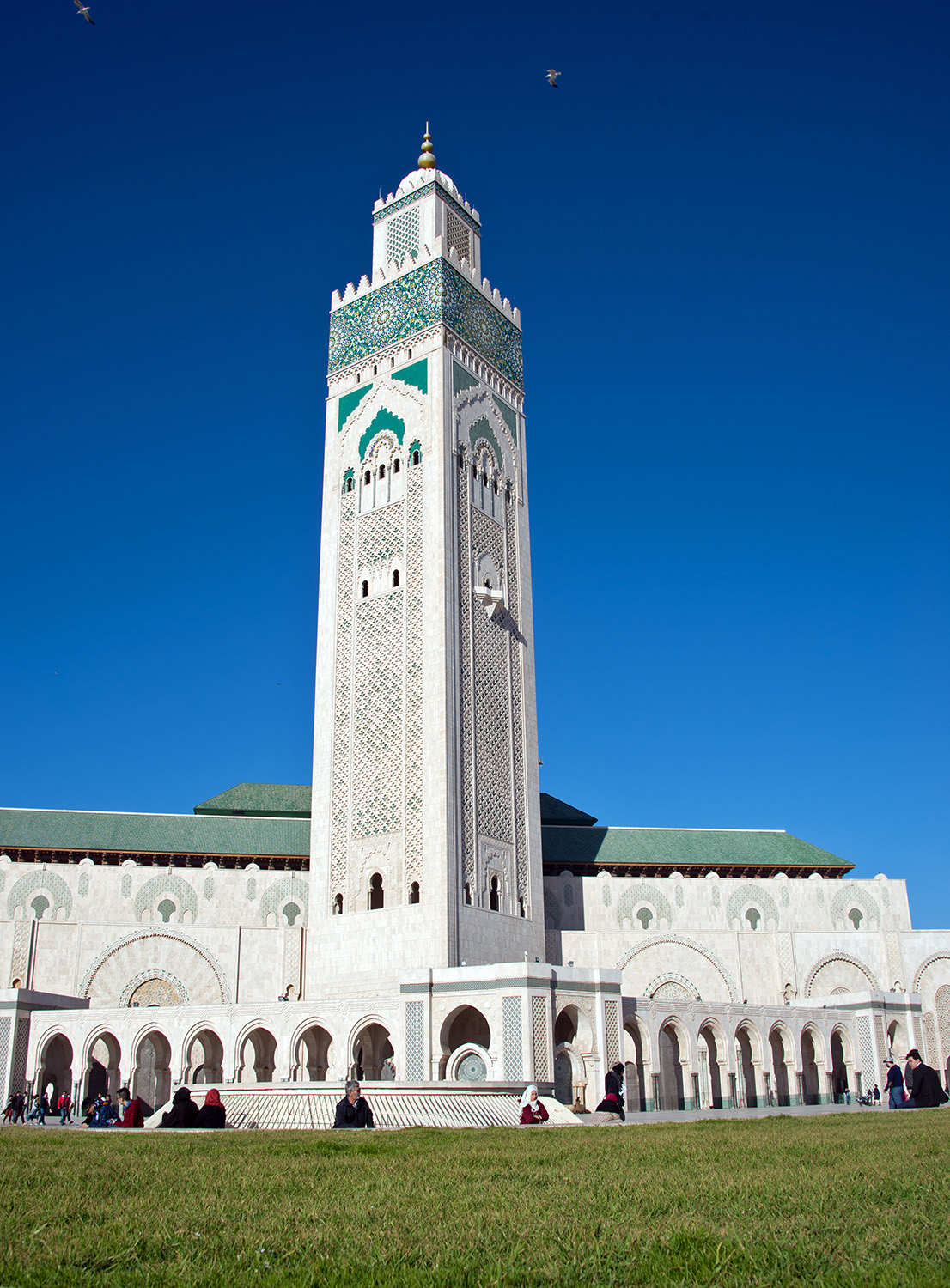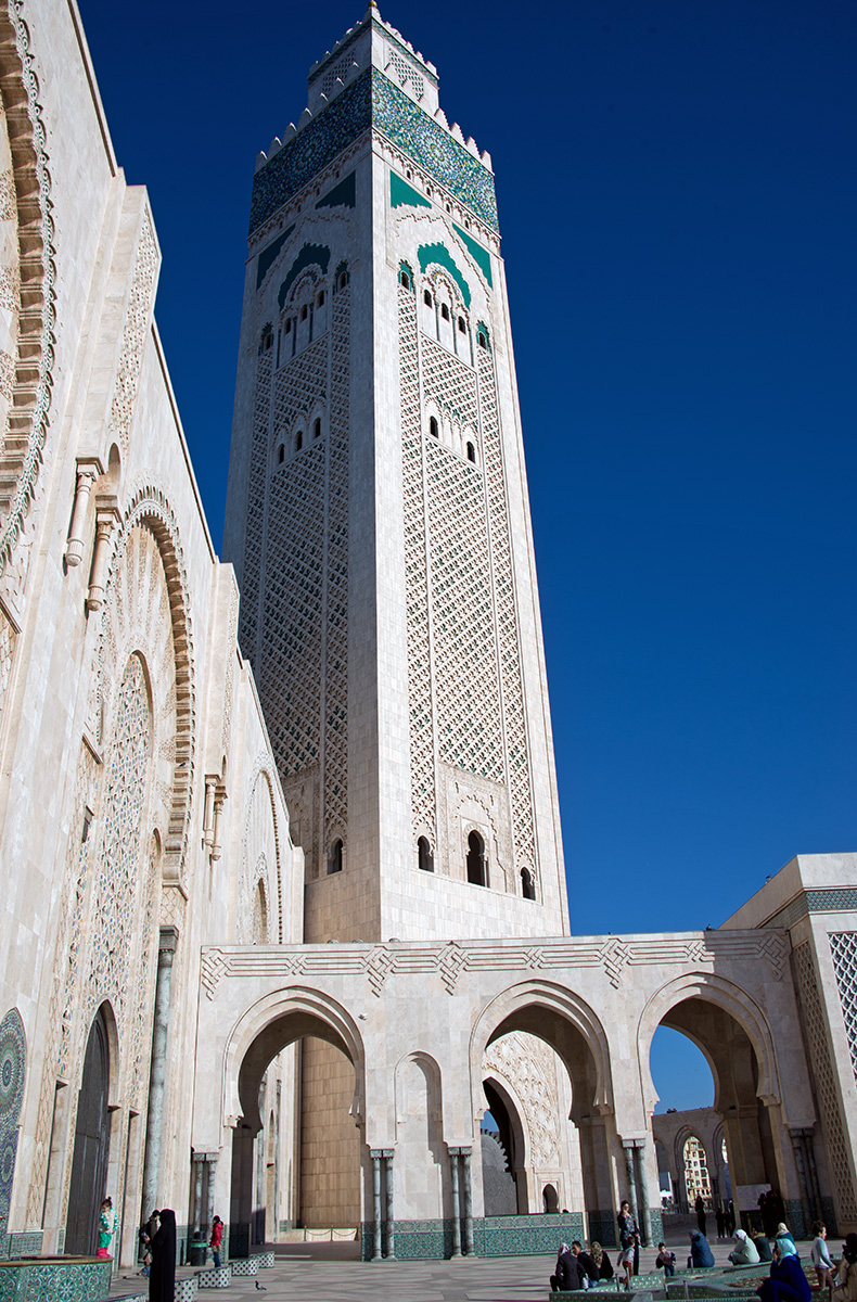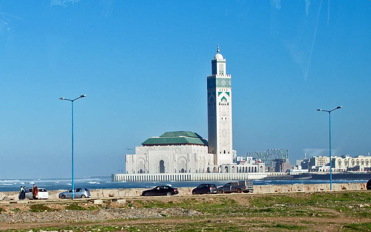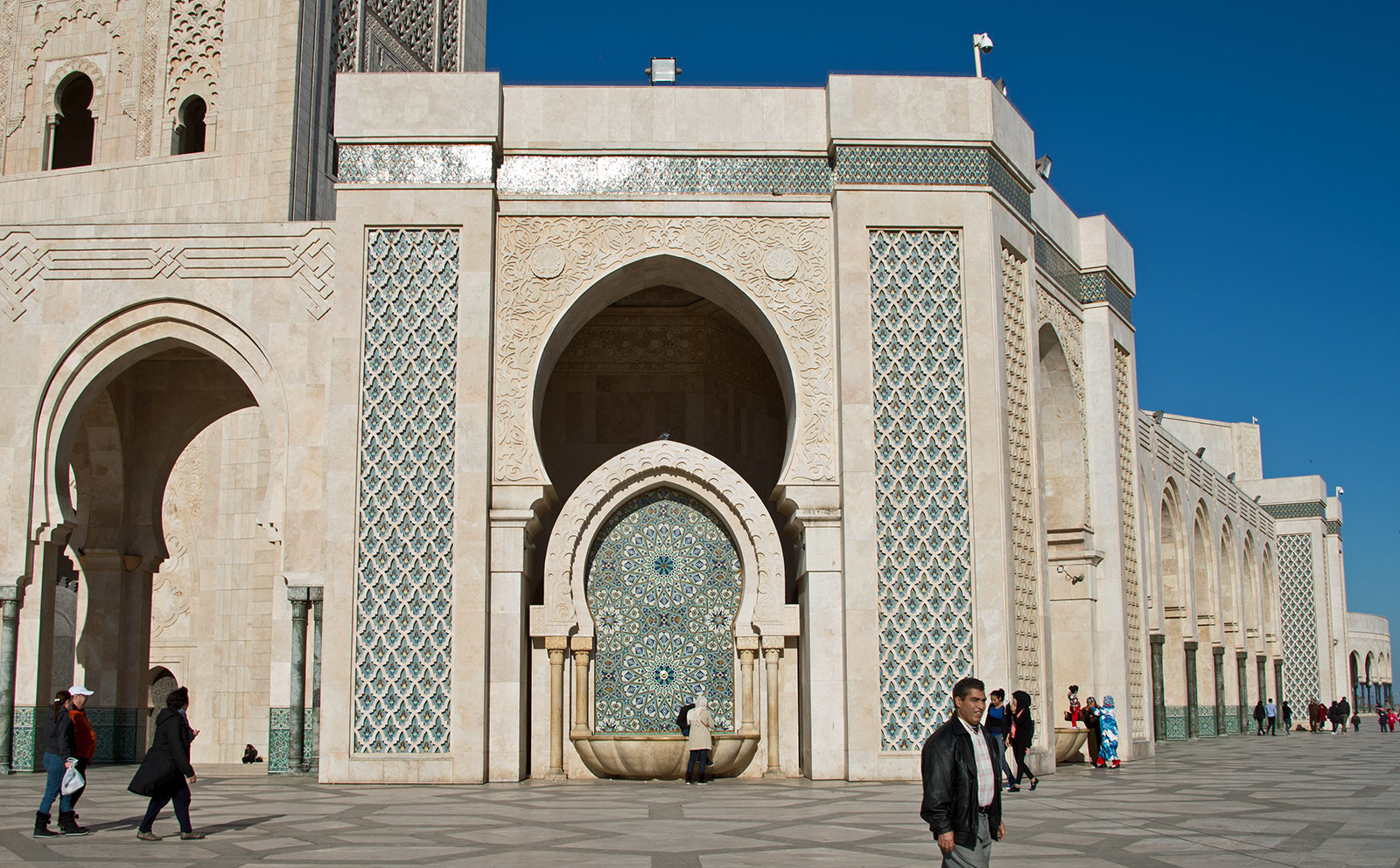 カサブランカは 同名の映画でよく知られており、以前はアラビア語で「ダール・バイダ(白い家)」呼ばれていたが、スペイン語に翻訳されて「カサブランカ」と呼ばれるようになりました。その歴史は古く、紀元前10世紀には人が住みはじめ、12世紀のムワッヒド朝時代にはすでに貿易港として栄えていました。一時ポルトガルによって破壊されましたが、18世紀に再建され、スペイン商人らがこの町に住み着くようになりました。現在はモロッコ最大の都市で人口は約400万人、経済の中心地であり、観光の入り口でもあります。高層建築のホテルやオフィス、広い公園の多い国際商業都市です。中でも、ハッサン2世モスクはモロッコの技術を集成して、1993年に海岸に建立された美しい建物です。