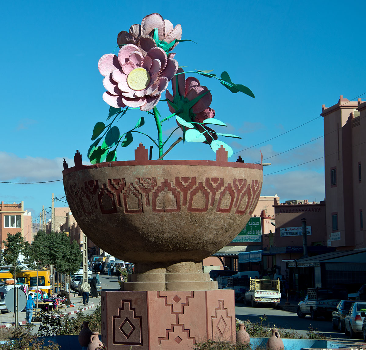村の中心にあるバラのシンボル