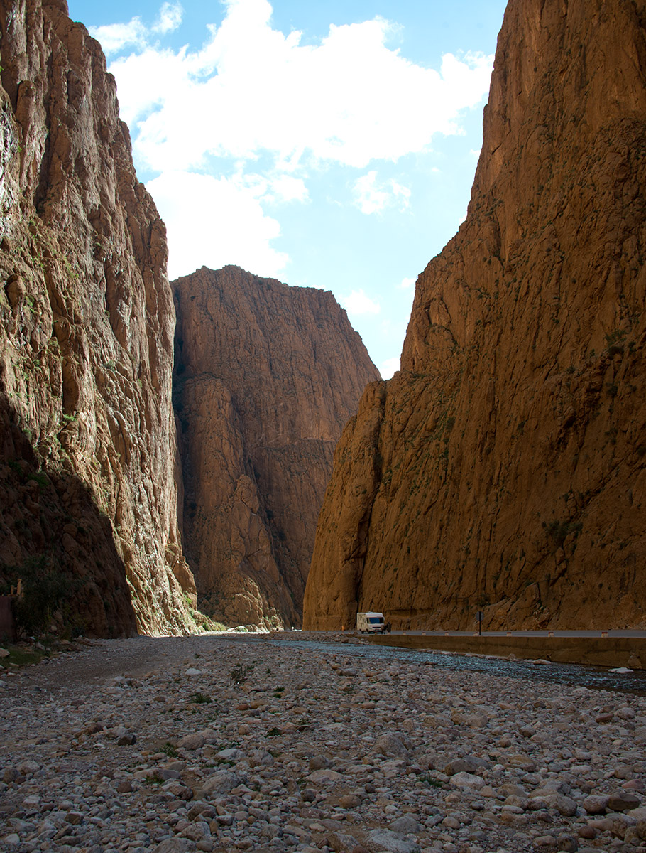 ワルザサードからカスバ街道を北西へ進むと、カスバ街道屈指の景勝地、トドラ峡谷がある。トドラ川沿いに立ちはだかる切り立った岩壁は200mから300mの高さです。