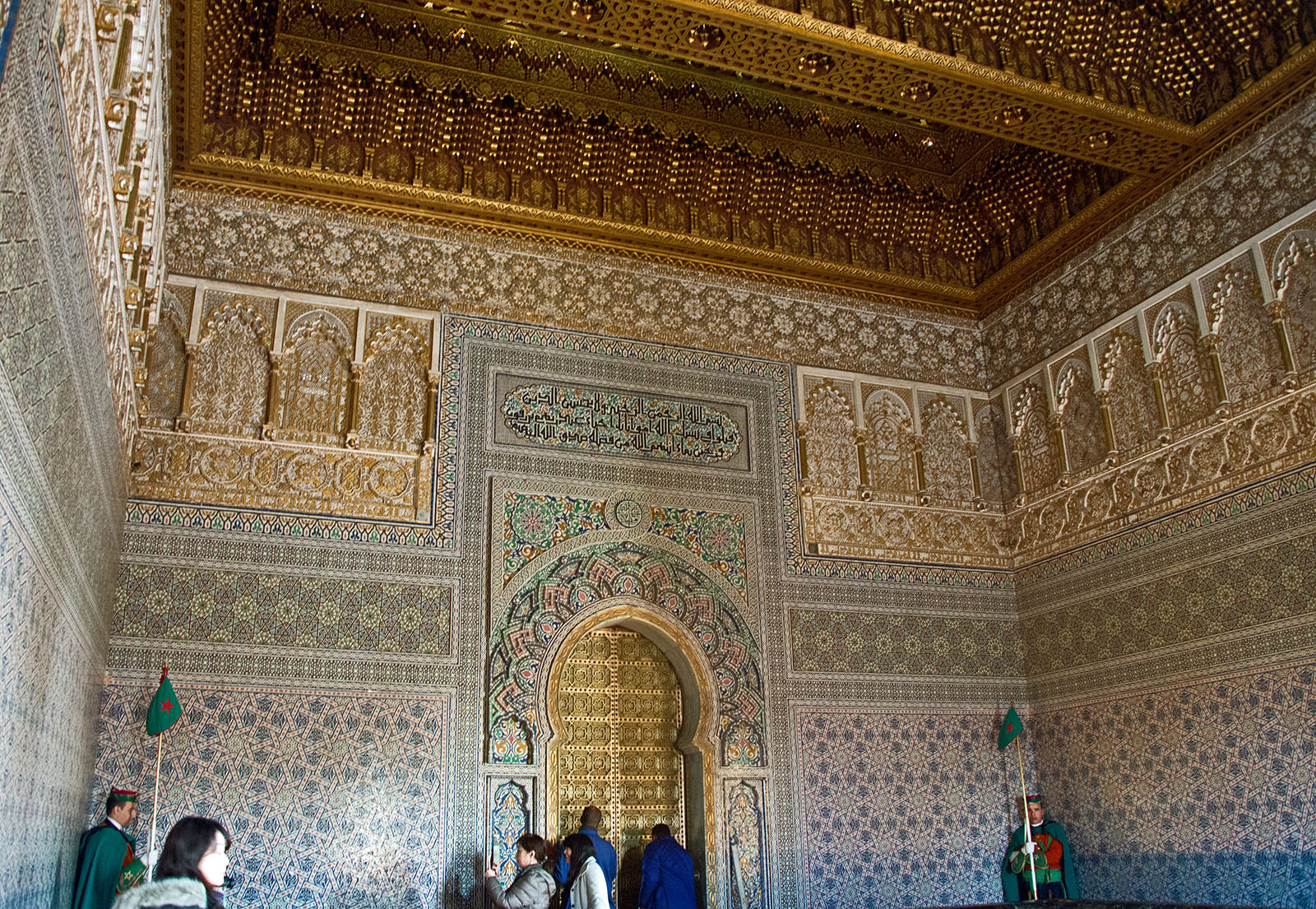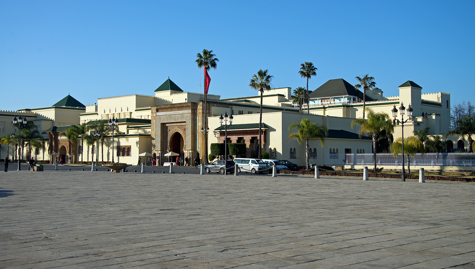 現国王ムハンマド6世が居住する王宮。直線を基調とした緑の屋根が美しい.緑はイスラムの神聖な色であるが,特にモロッコの緑は深みがあって味わい深い.加えてアラベスク模様,細い円柱などの様式はグラナダのアルハンブラ宮殿とも共通する美しいデザインです。