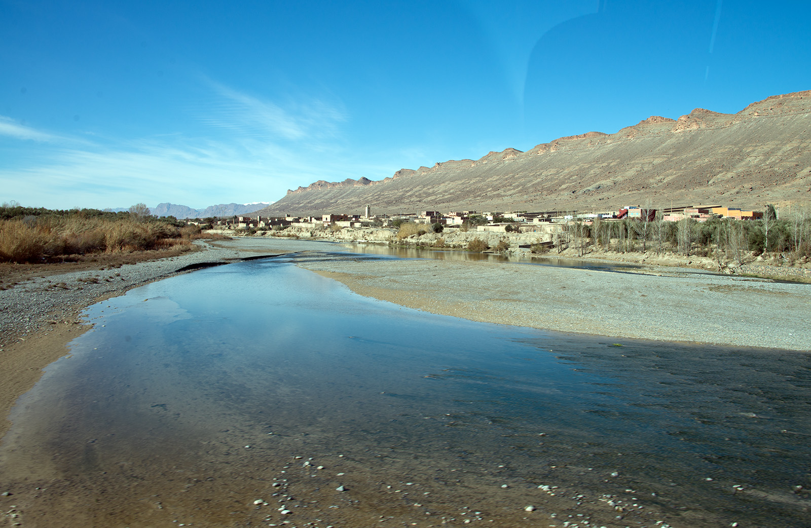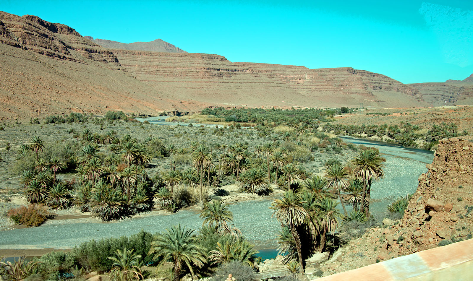ナツメヤシの生い茂る川沿いのオアシス
