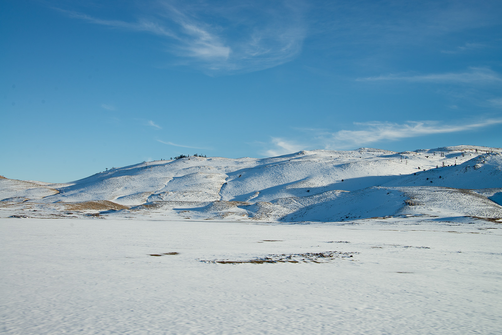 途中の山は雪景色(雪見物・スキー客のため道路が大渋滞)