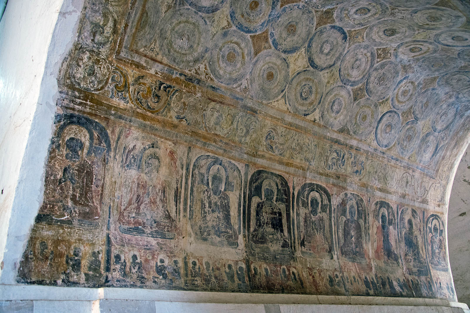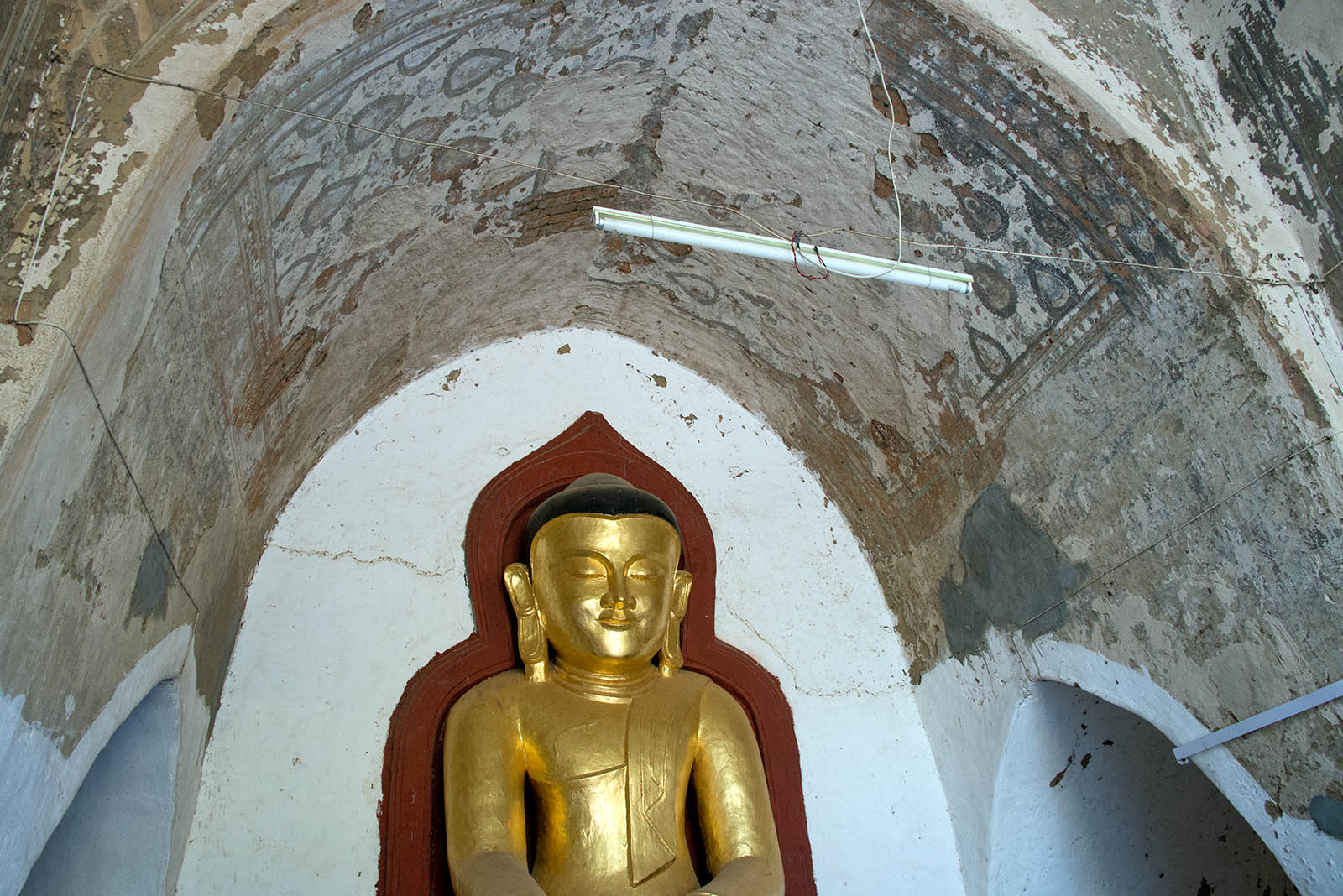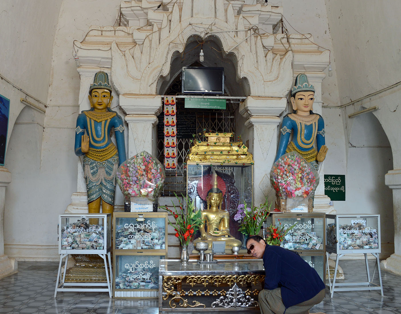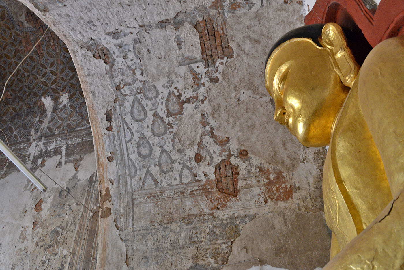 シュエサンドー・パゴダの敷地にある倉庫のような建物の中の暗い空間に18mの涅槃仏が穏やか横たわっている。11世紀の建造であり、涅槃仏は通常は北枕であるが、これは南枕である。
