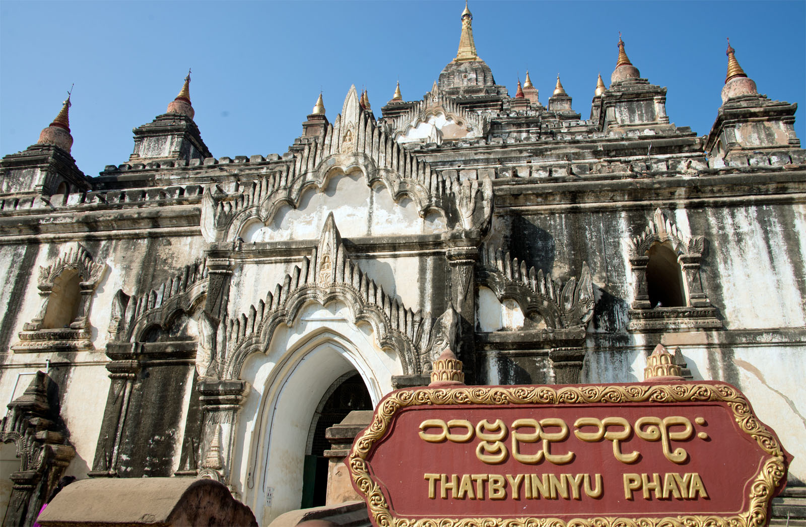 タビニュー寺院はミャンマー中部の都市遺跡バガンにある仏教寺院。12世紀半ば、パガン朝第4代王アラウンシードゥーにより建立。細かい彫刻が施された屋根をもち、中央に金箔で覆われた塔がある。この寺院はバガンで最も高く、61mある。