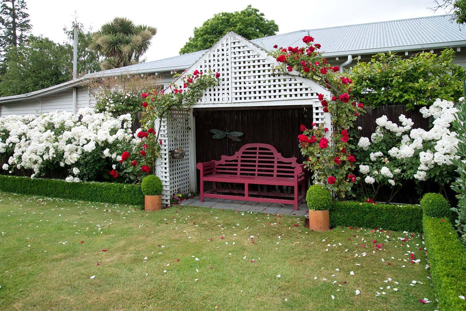 クライストチャーチ市内には740を超える大小の公園があり、「庭の街・ガーデンシティ」とも呼ばれています。一般家庭でも花を育てていることが多く、今回のツアーでは Wardell夫妻宅を訪れ、バラの咲きほこる庭や、部屋などを見せせてもらい。庭の見える部屋で、お茶とケーキをごちそうになりました。