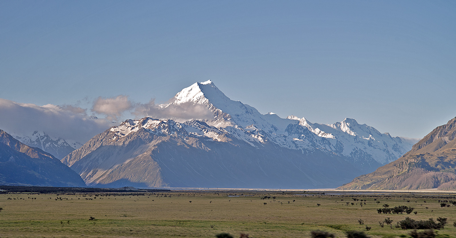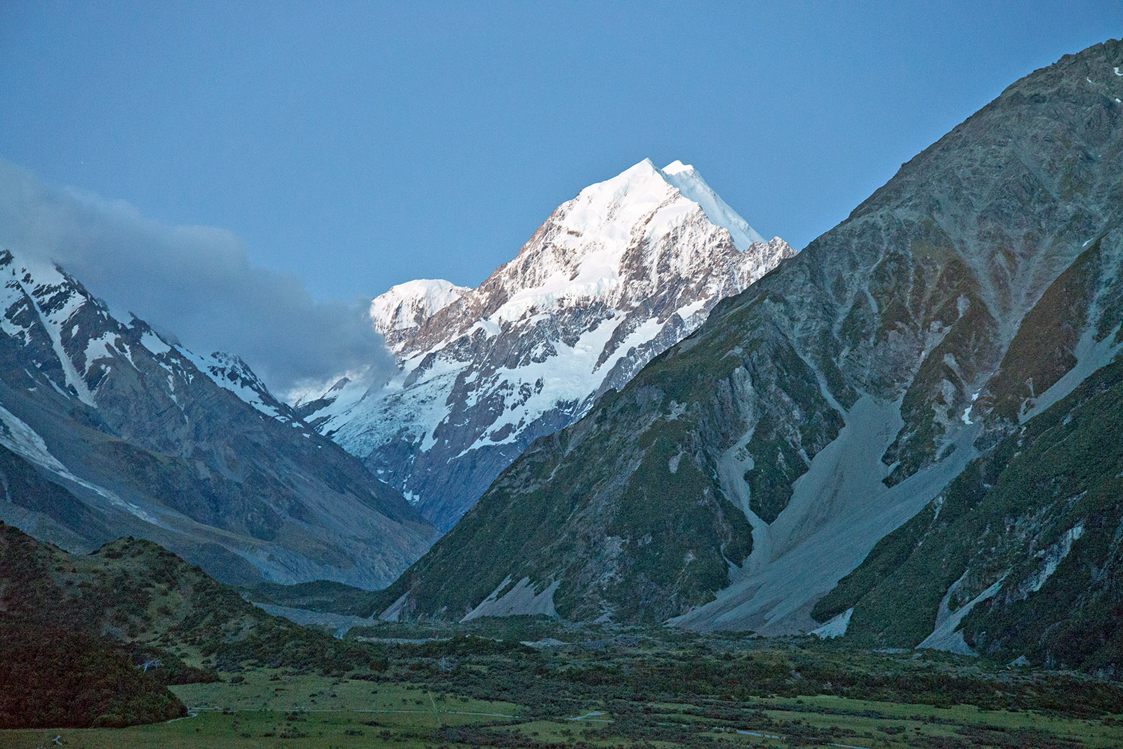 マウントクック(英: Aoraki/Mount Cook)は、ニュージーランド南島南アルプス山脈に位置するニュージーランド最高峰の山。標高3,724m。正式名称は「アオラキ/マウント・クック。 「アオラキ(Aoraki)」とは、ニュージーランドの先住民族マオリ・ナイ・タフ族の言葉であり、「雲の峰」という意味である。 昔話によると、アオラキは空の神ラキヌイの息子で彼には3人の兄弟がいました。アオラキと兄弟たちが海を渡っていたところ、カヌーが礁に乗り上げ、転覆した。カヌーの上によじ上った彼らに凍りつくような南風が吹きつけ、彼らを石に変えた。そのカヌーが南島となり、アオラキとその兄弟はサザンアルプスの山々となった。その昔話から、南島はマオリ語で「テ・ワカ・オ・アオラキ(アオラキのカヌー)」と呼ばれ、マウント・クックは「アオラキ」と呼ばれている。 「クック」はニュージーランドを探索したイギリスの海軍士官ジェームズ・クックの名である。出典 http://www.newzealand.com/jp/feature/national-parks-aoraki-mount-cook/