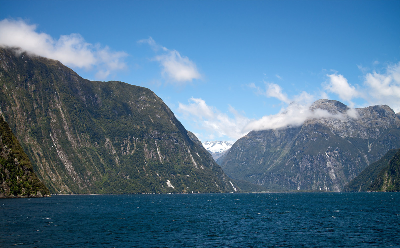 フィヨルドランド国立公園には他に13のフィヨルドがあるが、全てサウンドと名付けられている。ミルフォード・サウンドはタスマン海から15km内陸まで続いており、1200m以上の断崖絶壁に囲まれている。ミルフォードサウンドで最も有名な山は標高1800mのマイターピークで、海水面から直接そそり立つ山としては、世界で2番目の高さを誇る。また、最も高い山は、2300mのペンブローク山で、通年山頂に氷河が見られる。この氷河の雪解け水は、ボーウェン滝やスターリング滝を形成してフィヨルドに流れ出る。