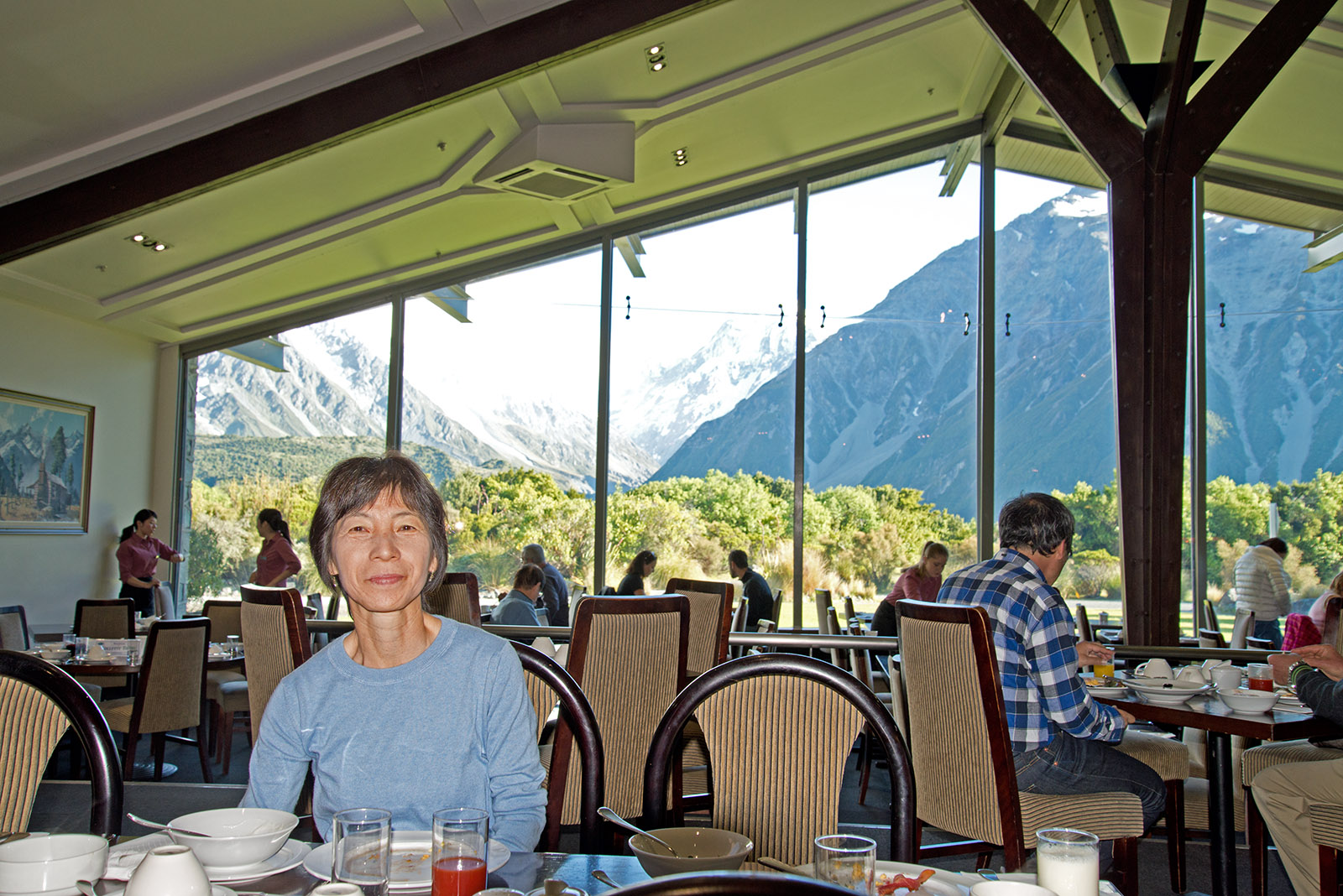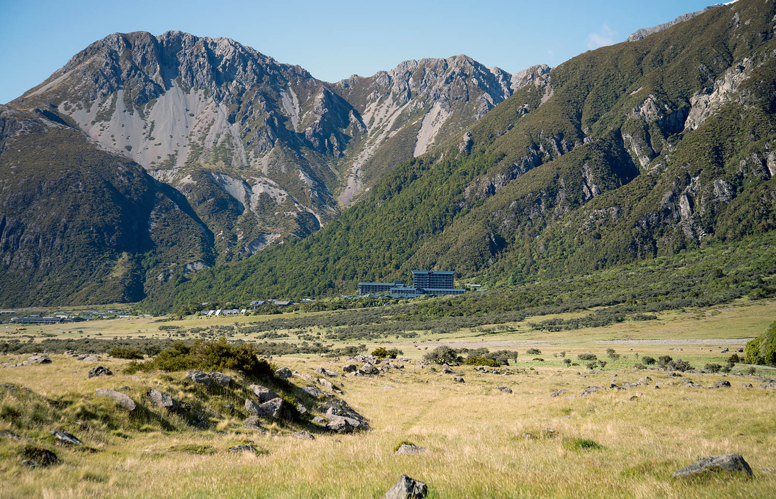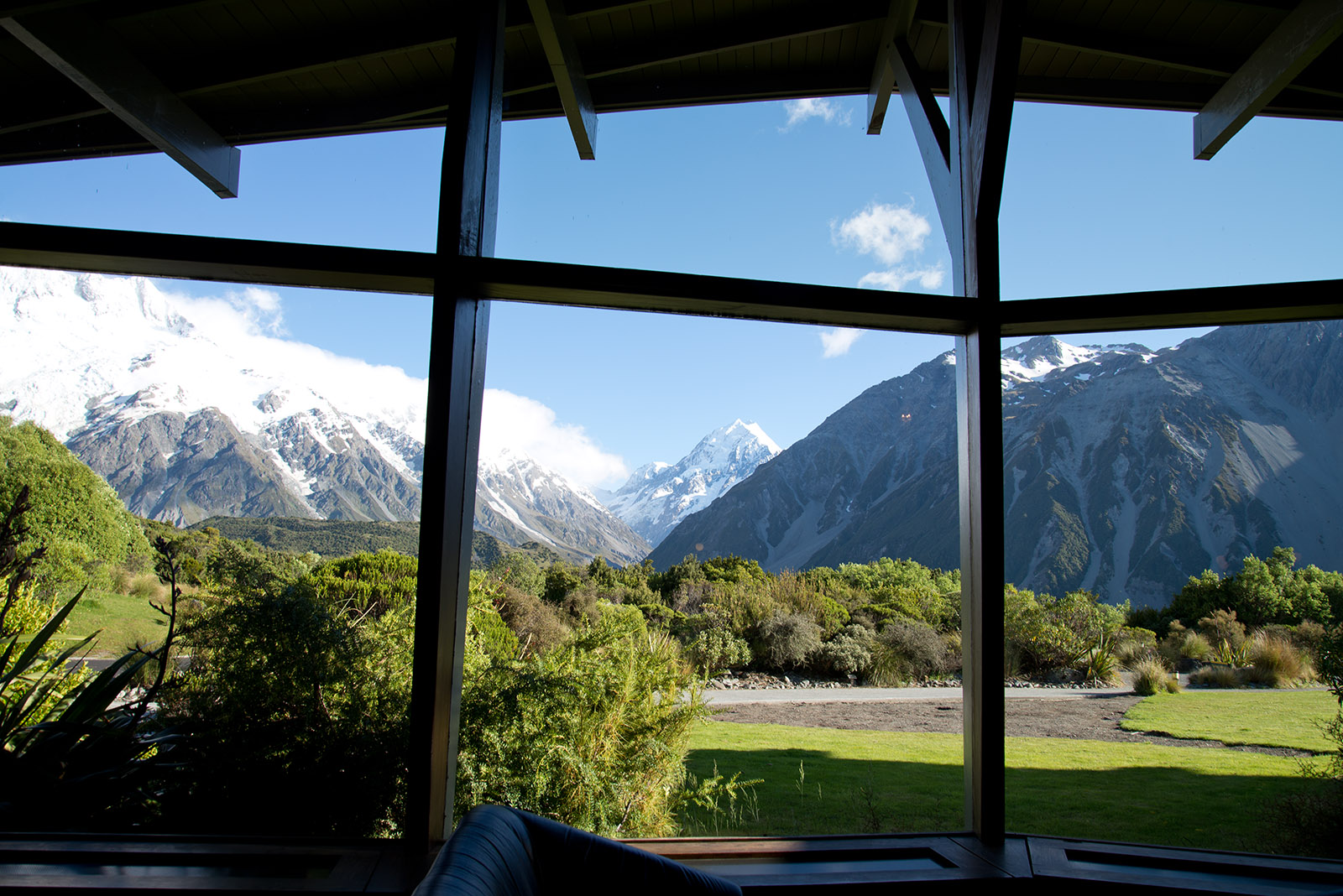 ハーミテージホテルはマウントクックが正面に見える好立地のホテルで人気が高い。