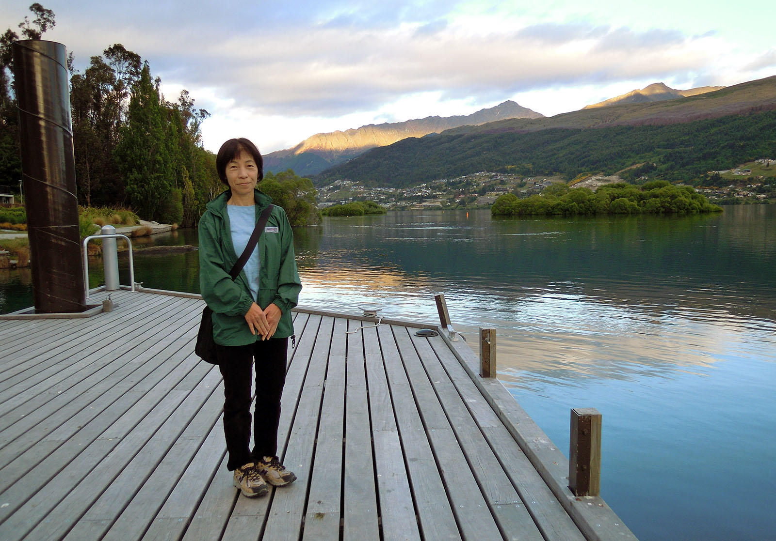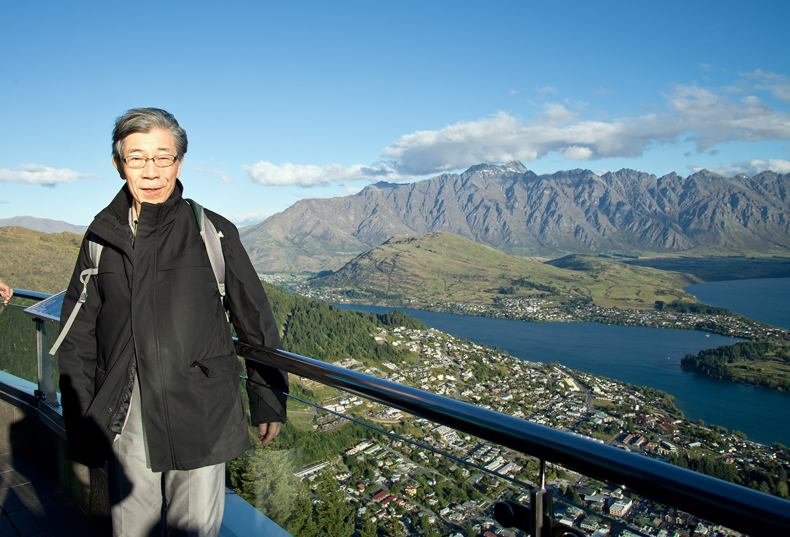 スカイラインゴンドラ展望台からクイーンズタウンの街、ワカティプ湖、南アルプス