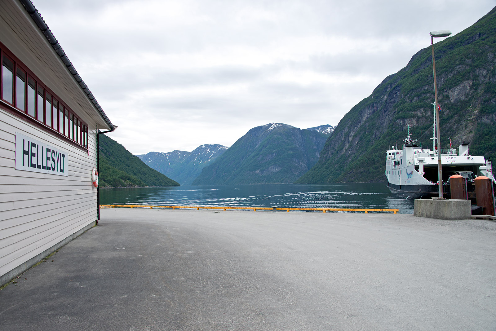 ヘレシルトでフェリーに乗船し、ガイランゲルフィヨルドを鑑賞。