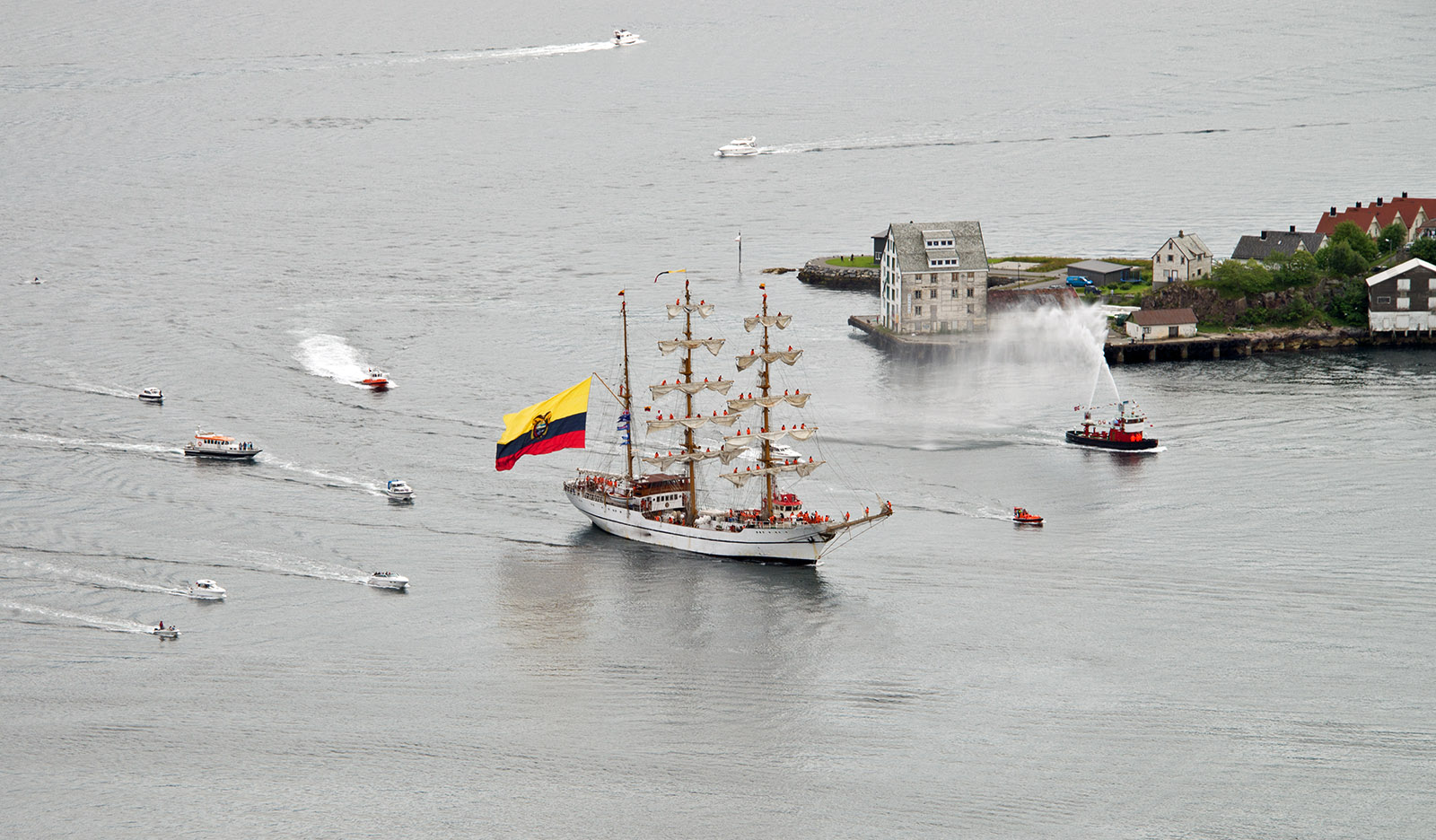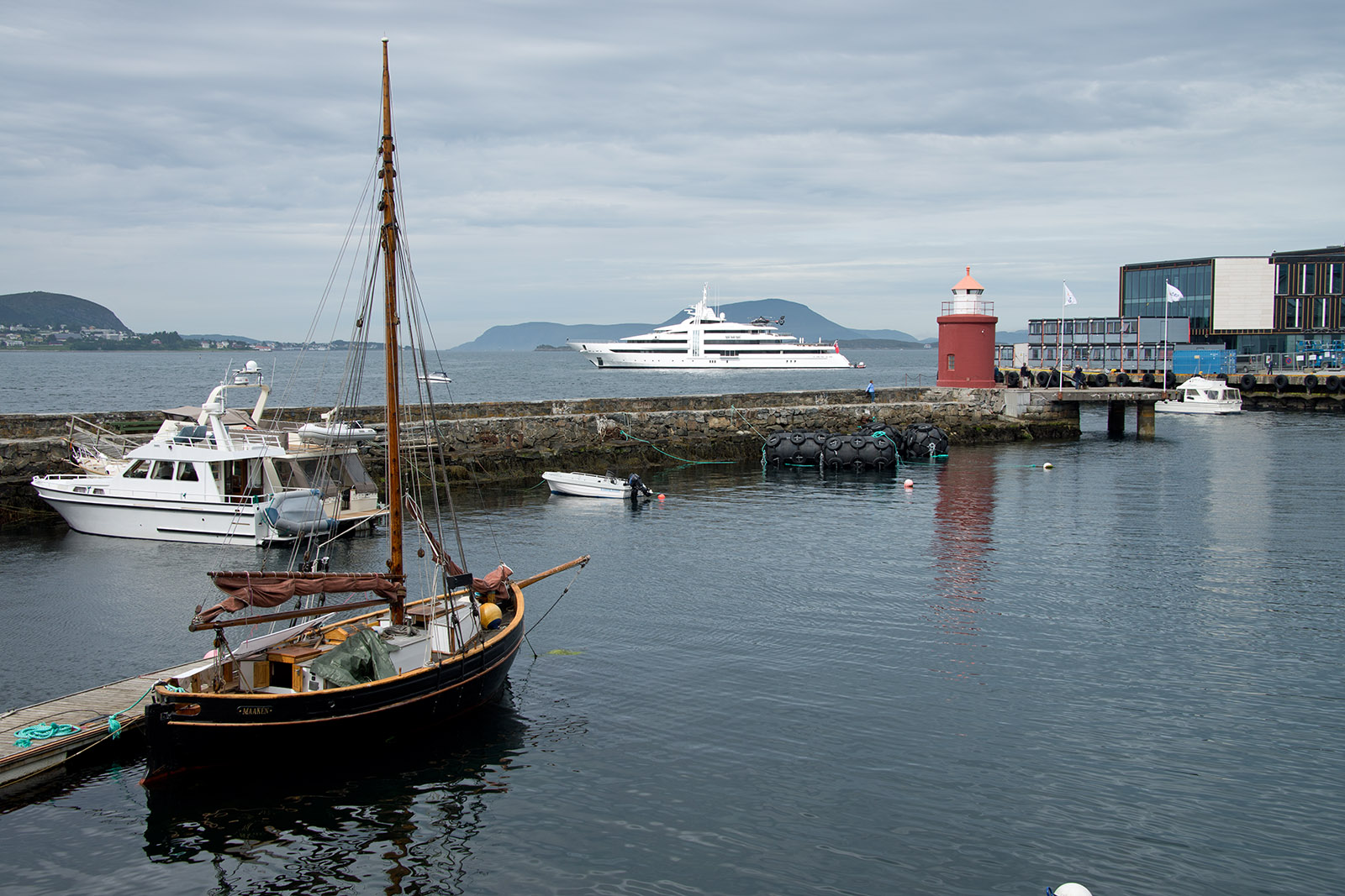 アールヌーボー調の建物が並ぶ美しい魚港 1904年1月23日に大火に見舞われ、街の中心部が焼失した際、ノルウェー国内のみならず、外国からも多大な援助を受けた。特に頻繁にフィヨルド群へ休暇で訪れていたドイツ皇帝ヴィルヘルム2世はドイツ国内に於いて大々的にオーレスンへの支援を呼びかけ、オーレスン復興の最大の貢献者となった。