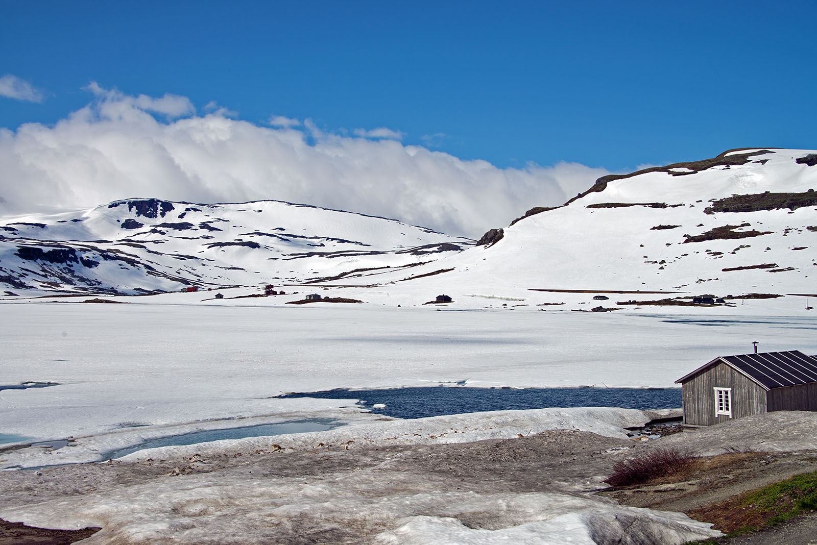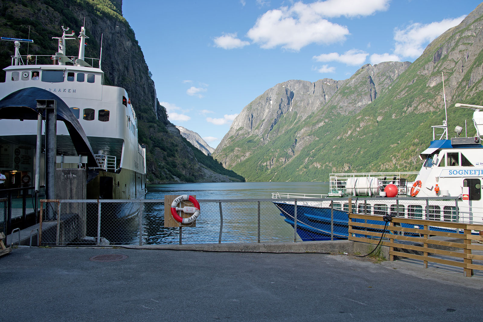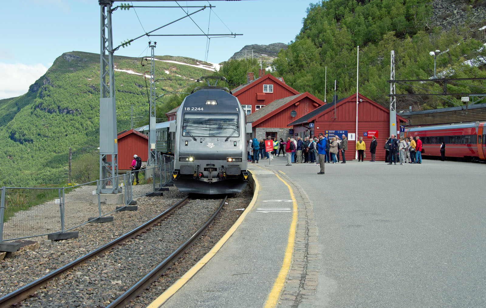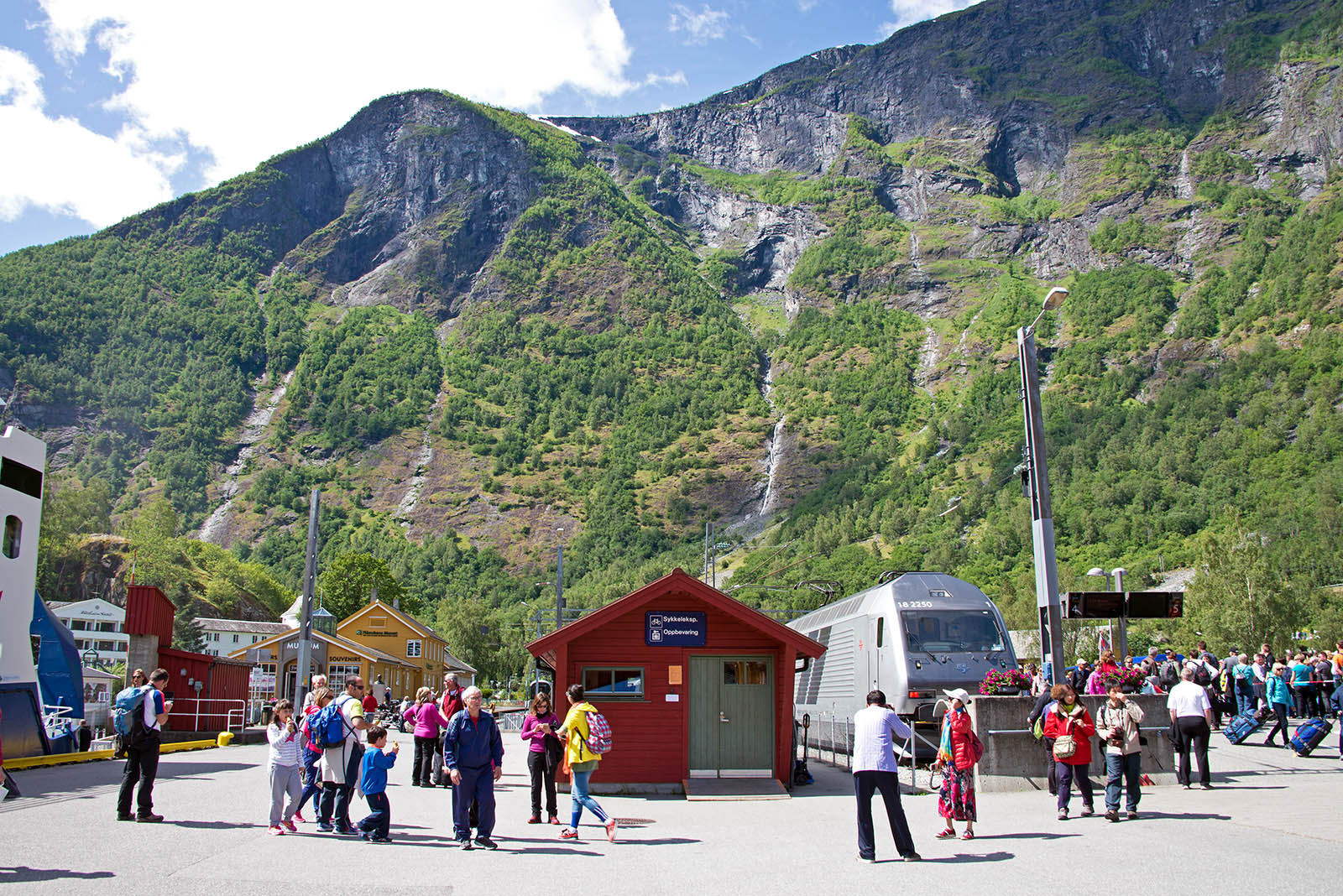 フロム鉄道の終点で、大型クルーズ船の接岸できる港がある。ここで鉄道に乗り換え、フィヨルドの景色を楽しむ大型クルーズ船の客であふれていた。