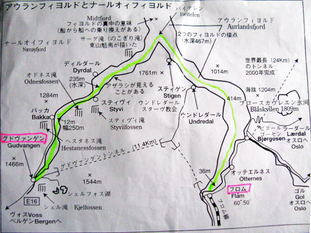 アウランフィヨールド,ネイロフィヨルドのマップ 沢山の滝がある
