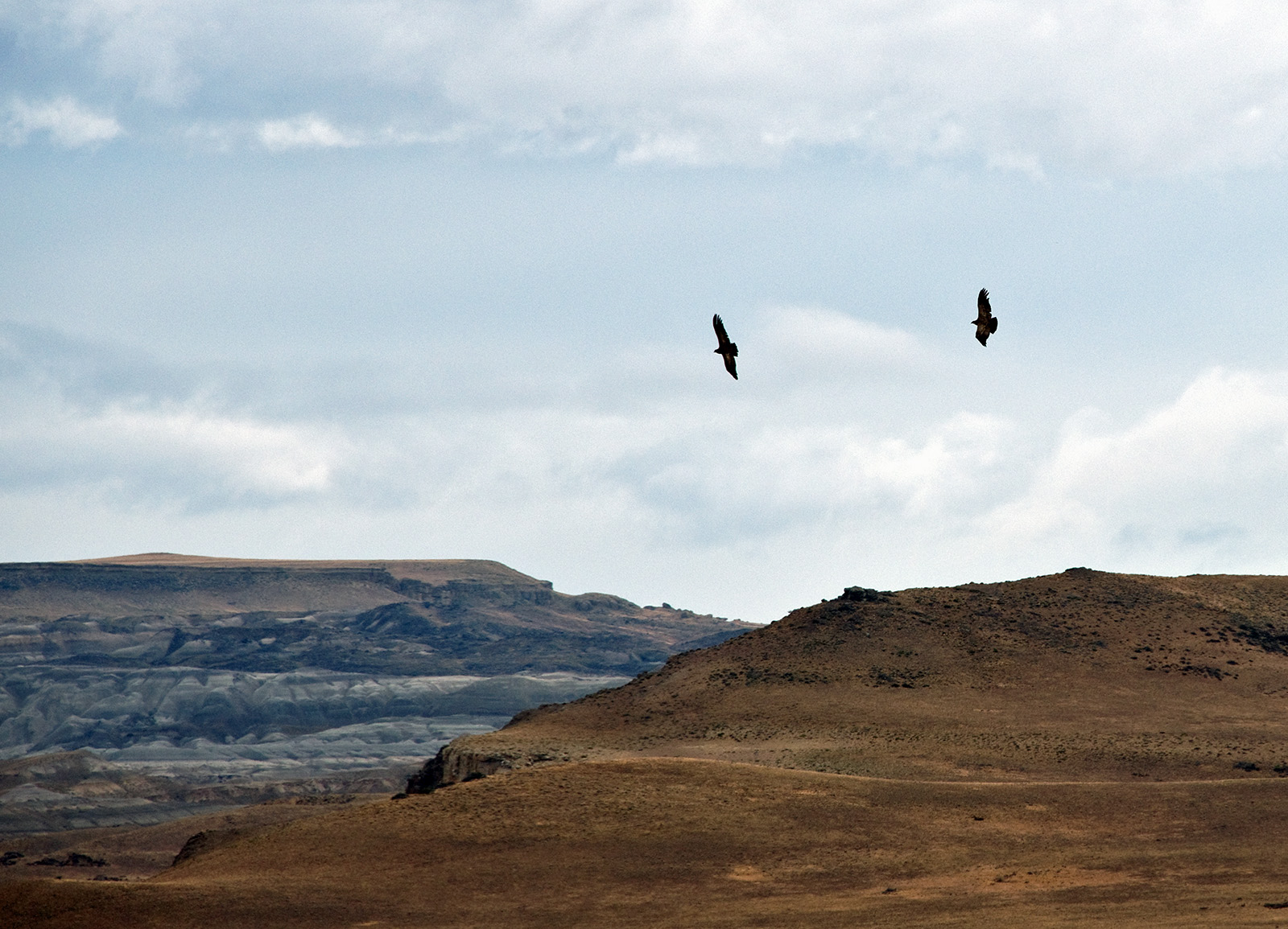 バスでエル・チャルテンの向かう、コンドル、ラ・レノマのカフェ、ピエドマ湖とピエドマ氷河を眺める