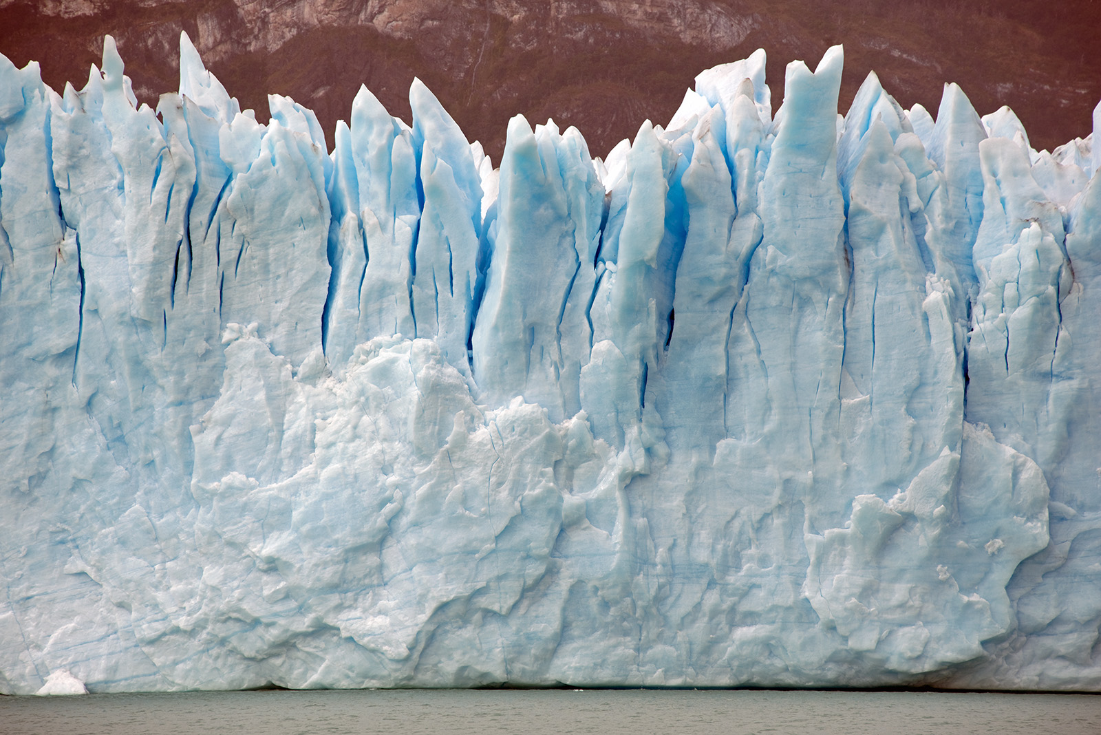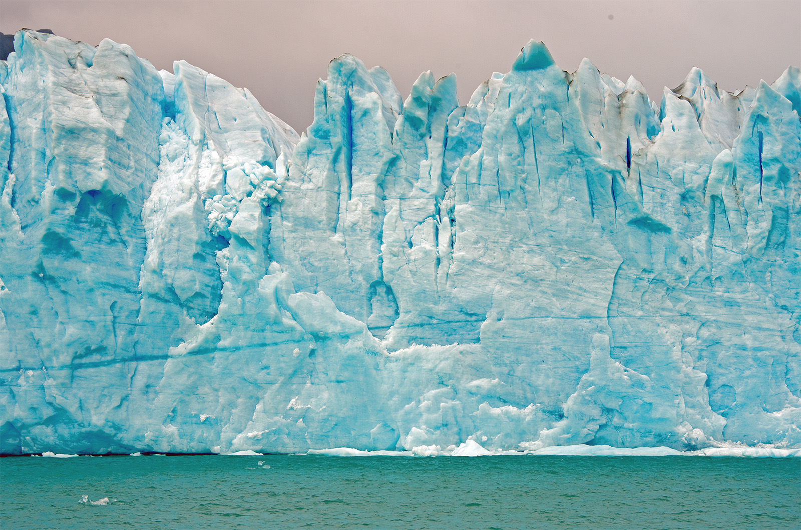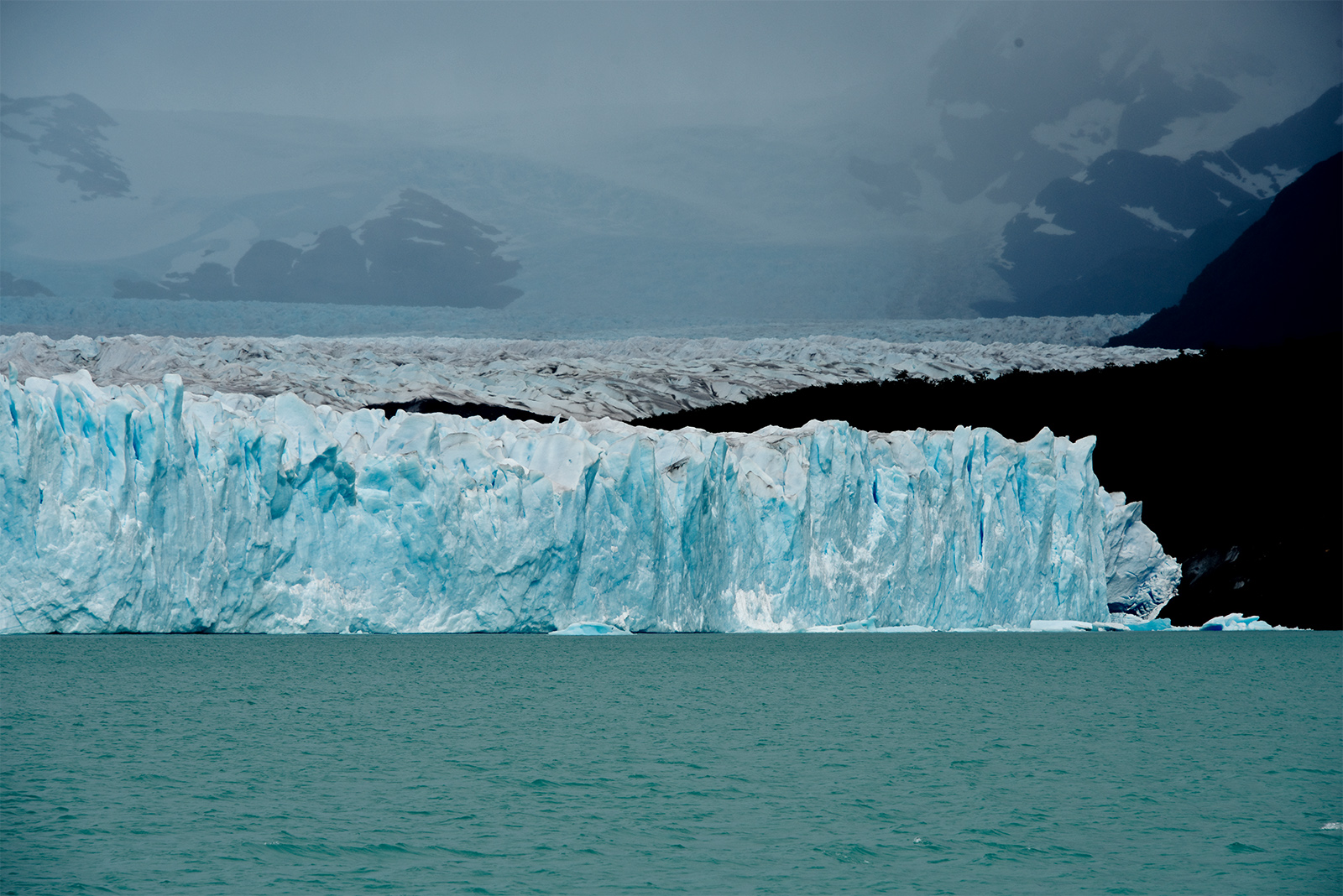 ペリト•モレノ氷河の南側 船から眺めた60mの氷河の壁
