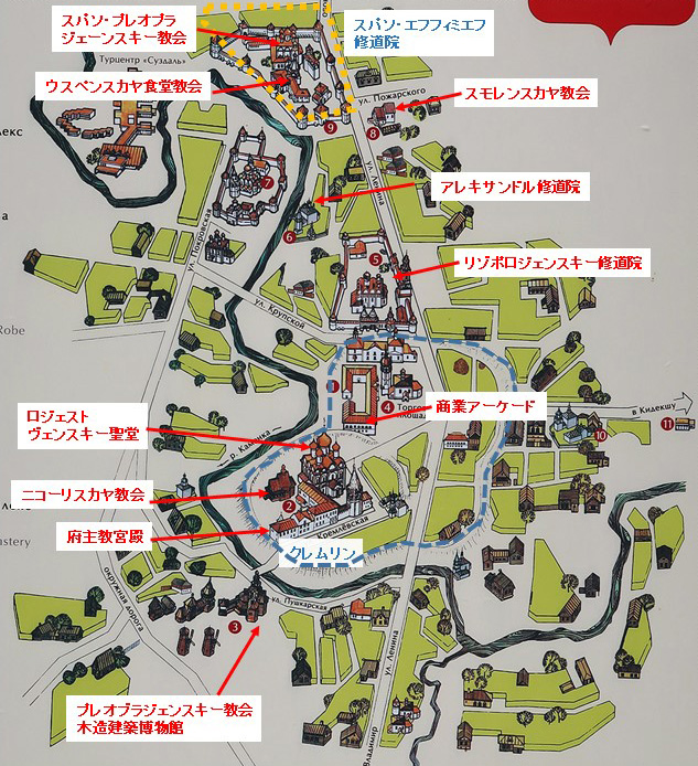 スズダリで一番大きな修道院で、12の塔と城壁に守られた砦のようです。