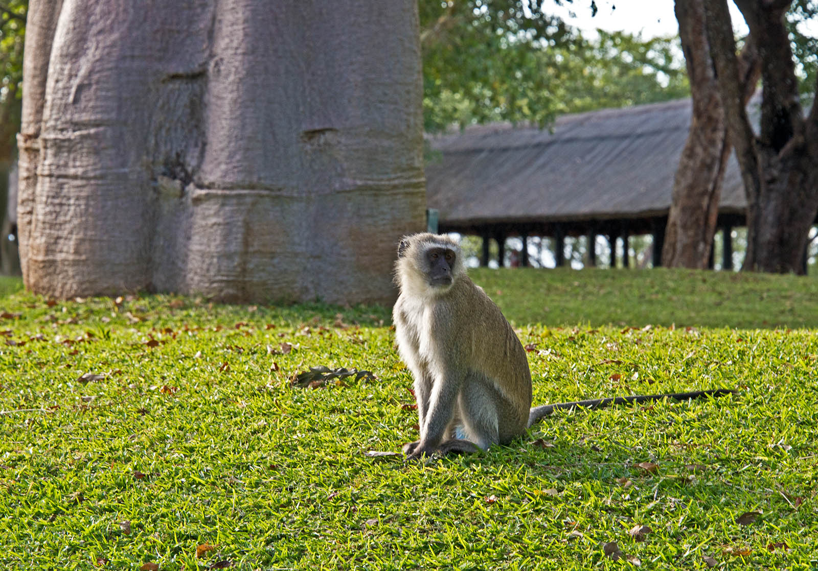 午後3時にホテル:エレファントヒルズリゾートに到着,サルとバオバブの木が出迎え