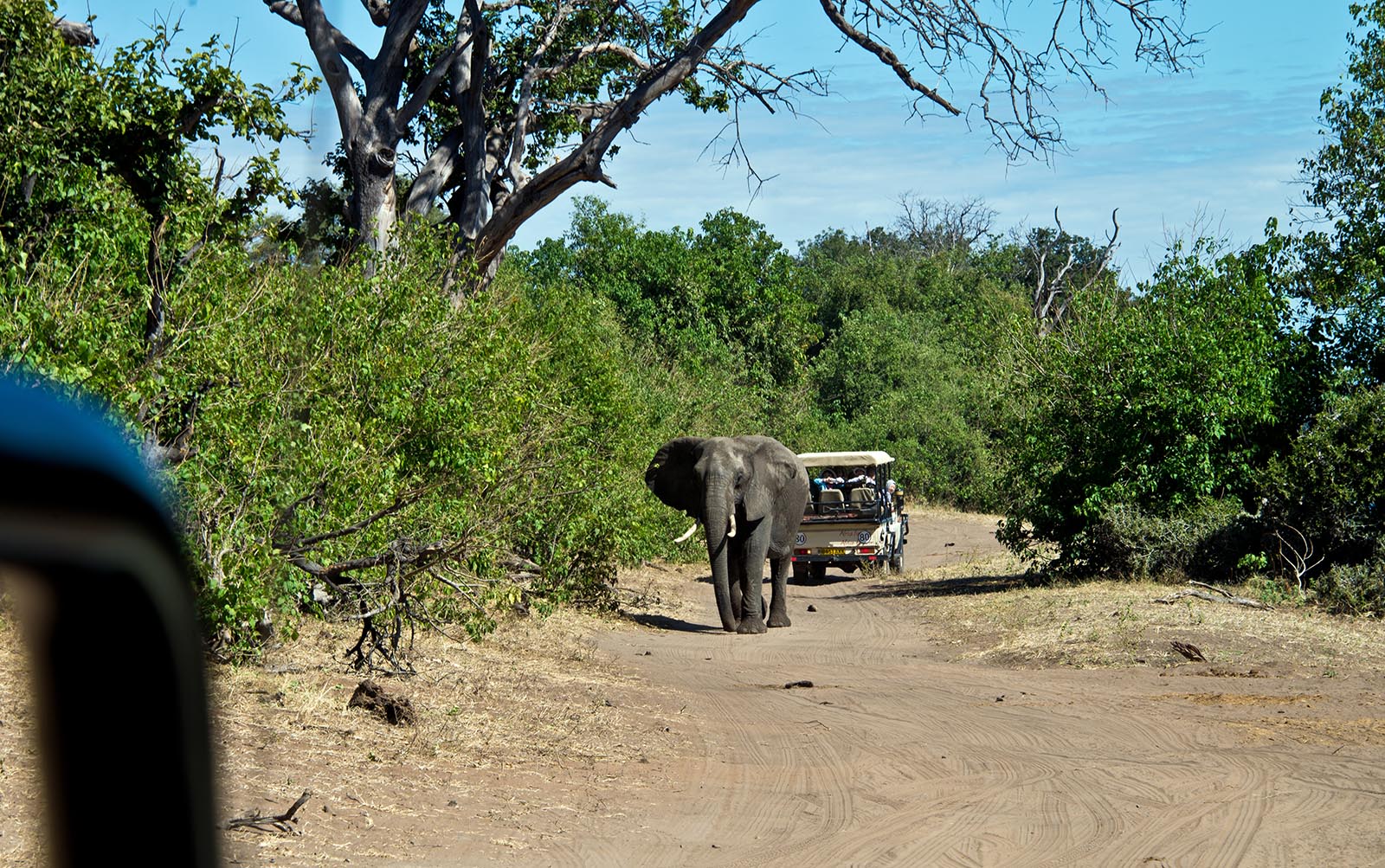 象の群れがサファリカーの前で威嚇 一寸怖かった