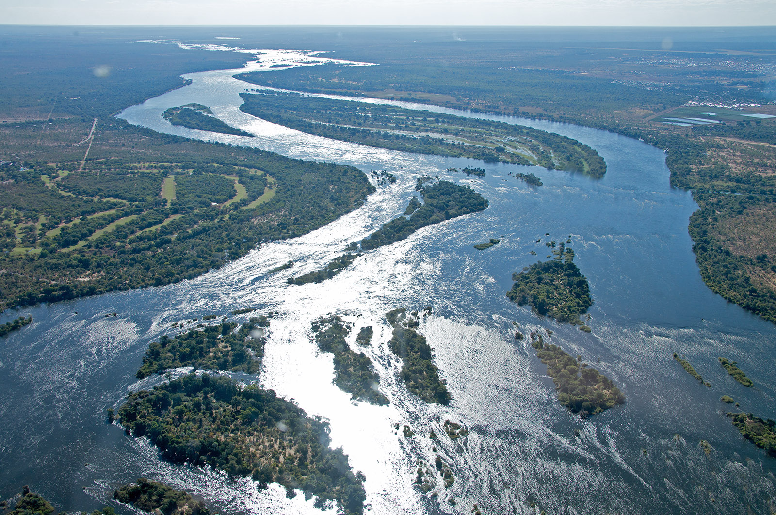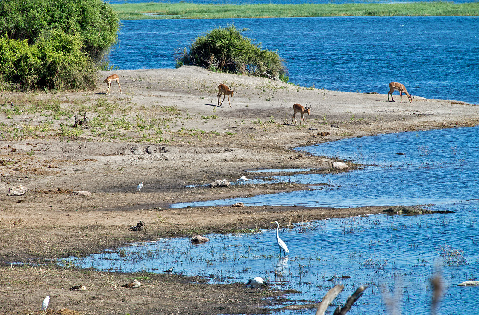 チョベ川はザンベジ川の支流でビクトリアの滝の80km上流に位置する. ここはボツワナ,ナミビア,ジンバブエ,ザンビアの4国の国境である.