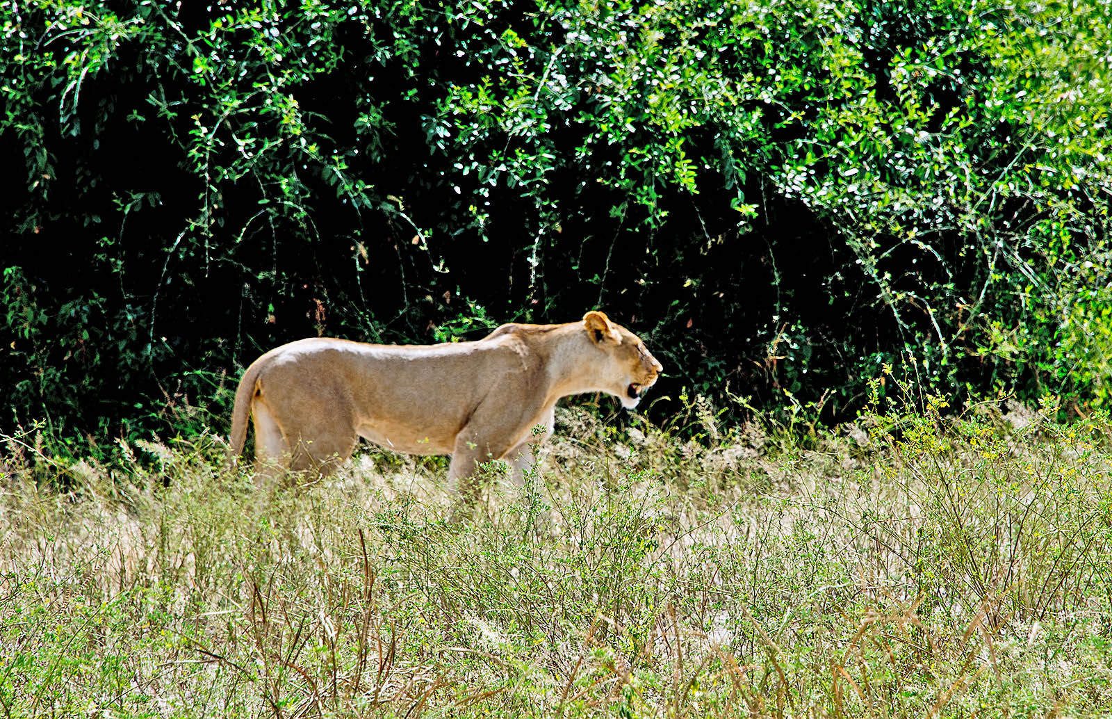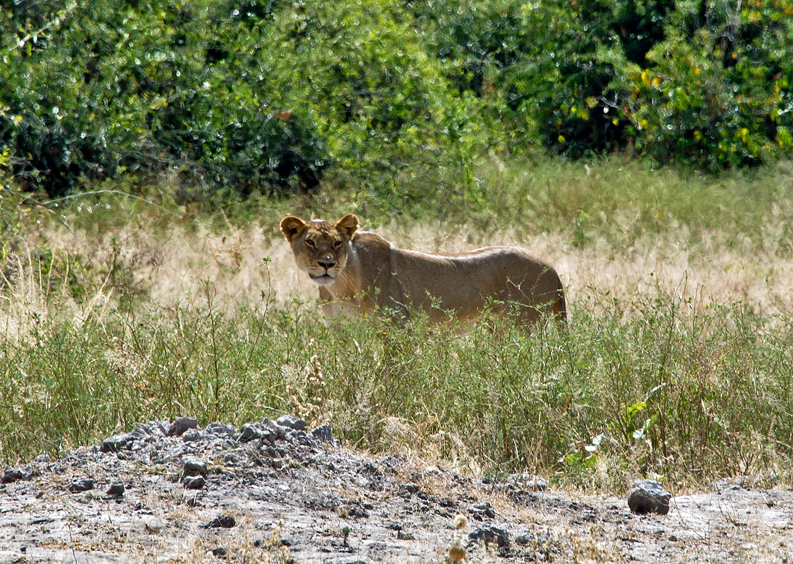 [日中にライオンに会えるのは珍しい、しかも2頭も、運がとても良いとガイドの話]
