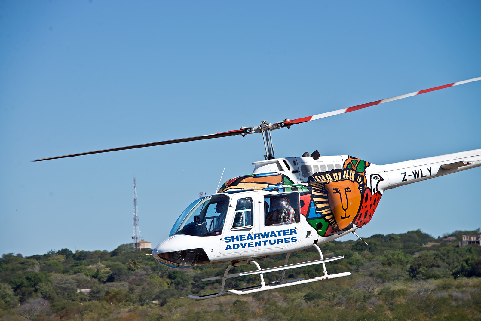 ヘリコプターで空から滝を眺める