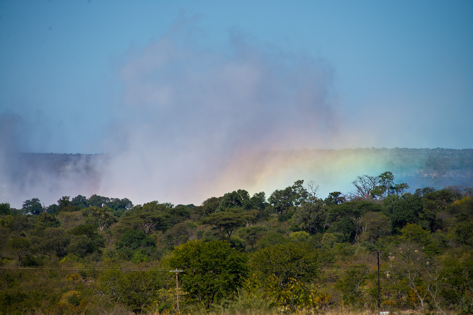 ホテルからビクトリア滝の巨大な水煙が見える.