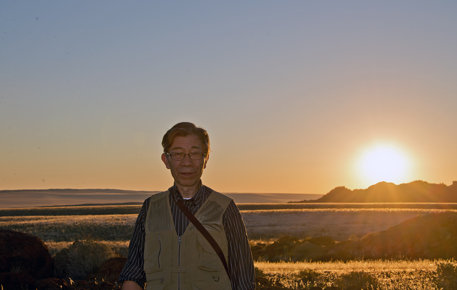 砂漠の夕日を観賞