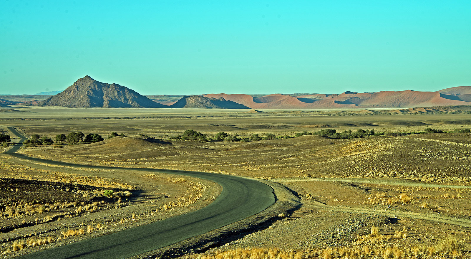 5000万年-1億年前に生まれた世界最古の砂漠。大西洋に沿って南北1288km、東西は48kmから161km。夏の最高気温は40度を超え、冬は氷点下と寒暖の差が激しい. 降雨量は20mm/年と極わずか. 鉄分を帯びた砂はアプリコット色で、世界で最も美しい砂漠と言われる.