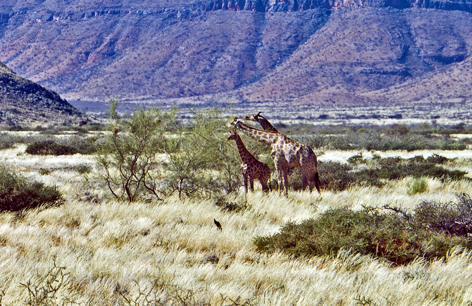 キリンの一家 (砂漠でも元気に暮らしている)