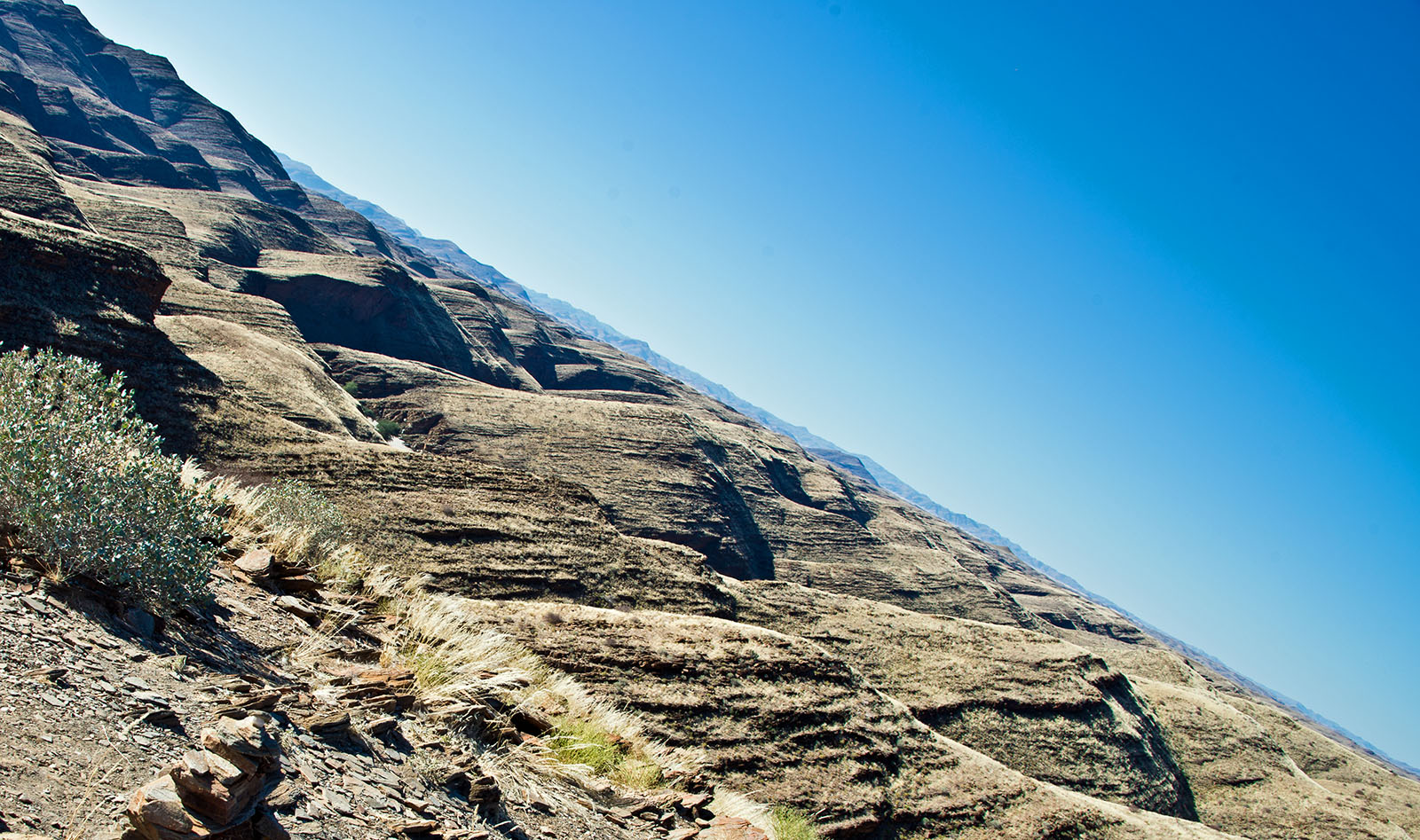 クイセブ地区 規則的な多数の丘が続く 地層が30度傾いている