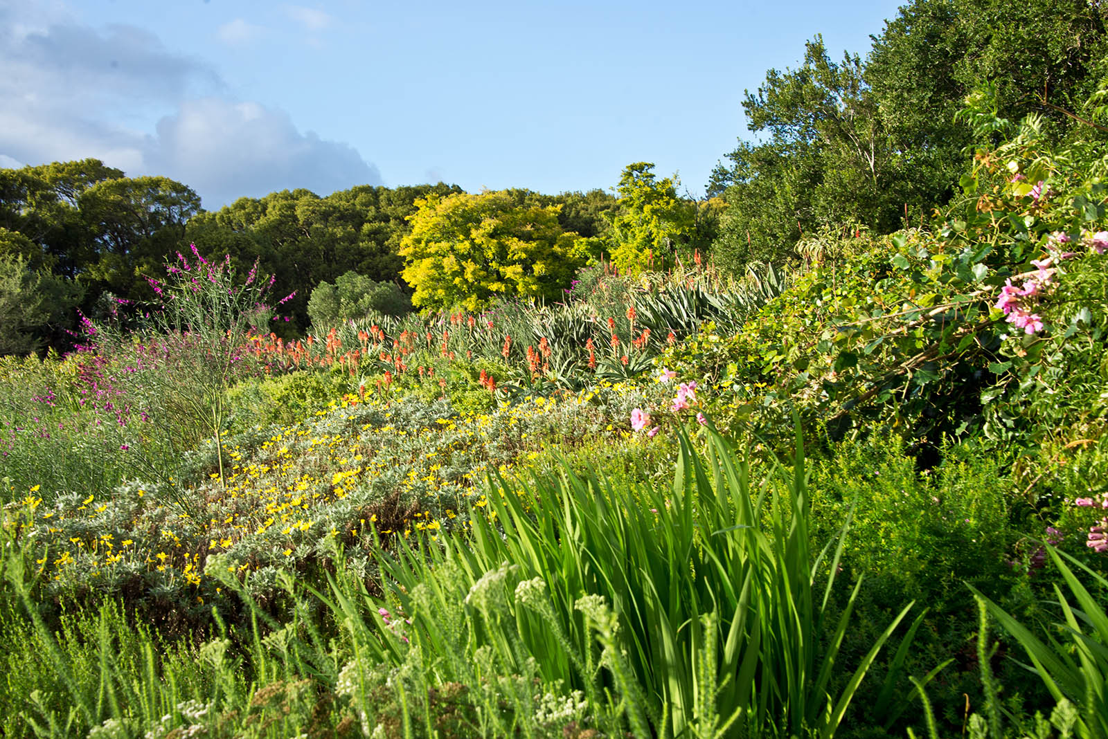 午前:カーステンボッシュ植物園で特色のある花や木を観賞、若いウイルウイチアも見る