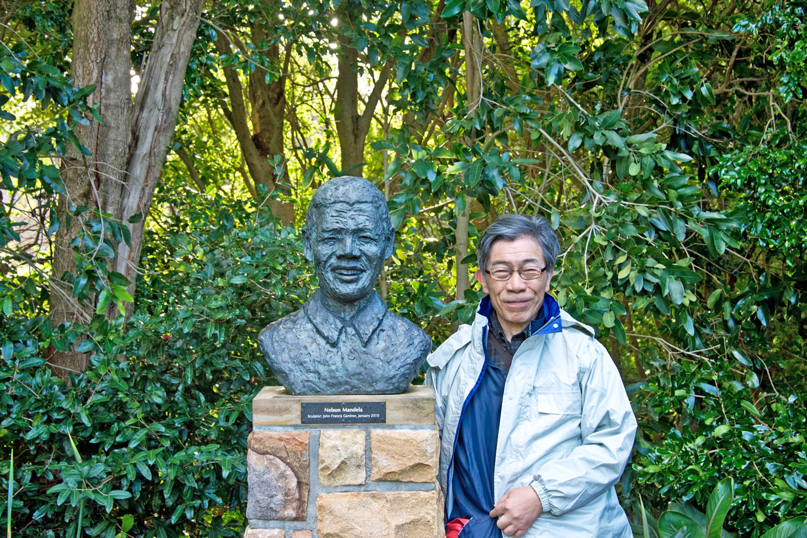 ネルソンマンデラの像と並んで