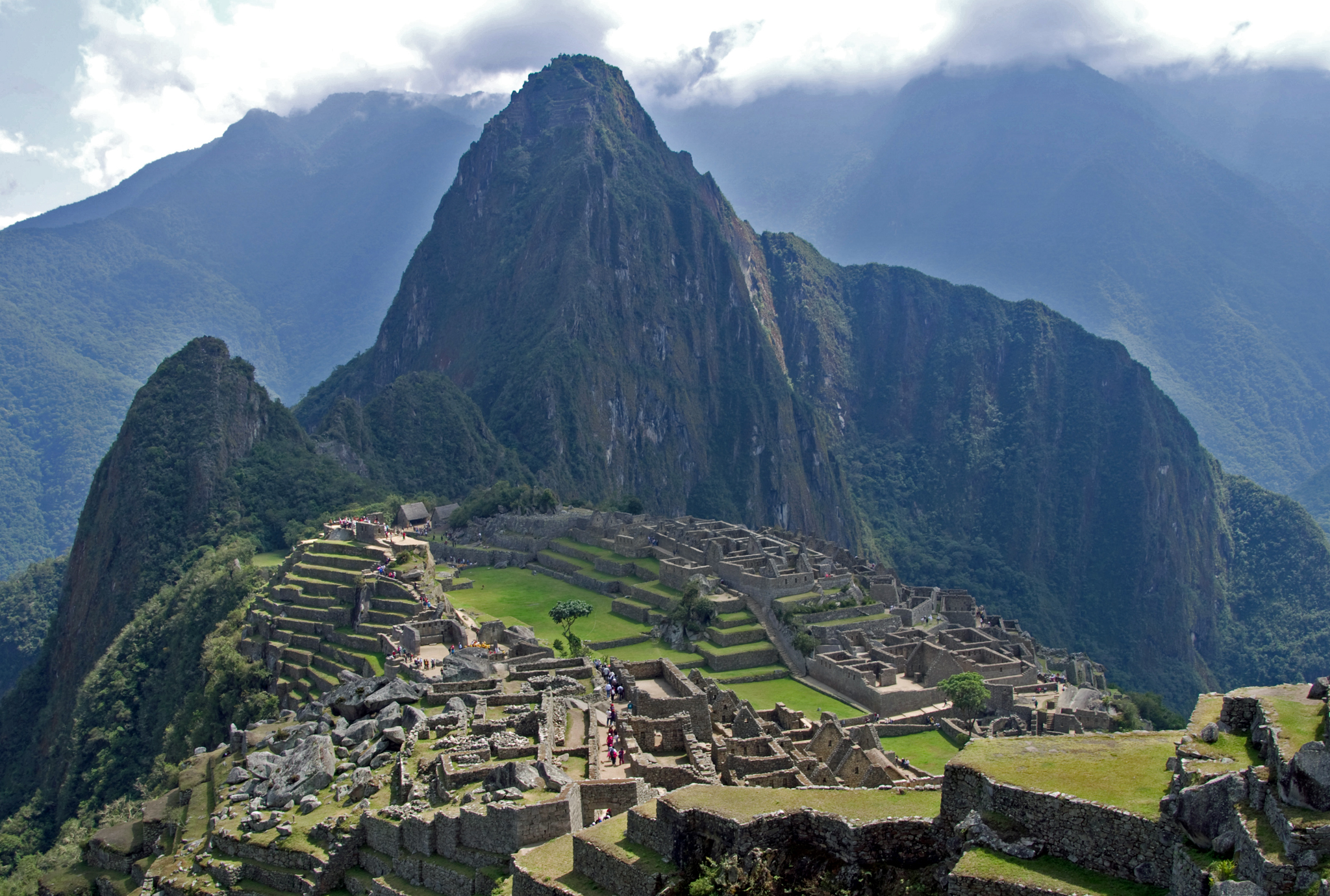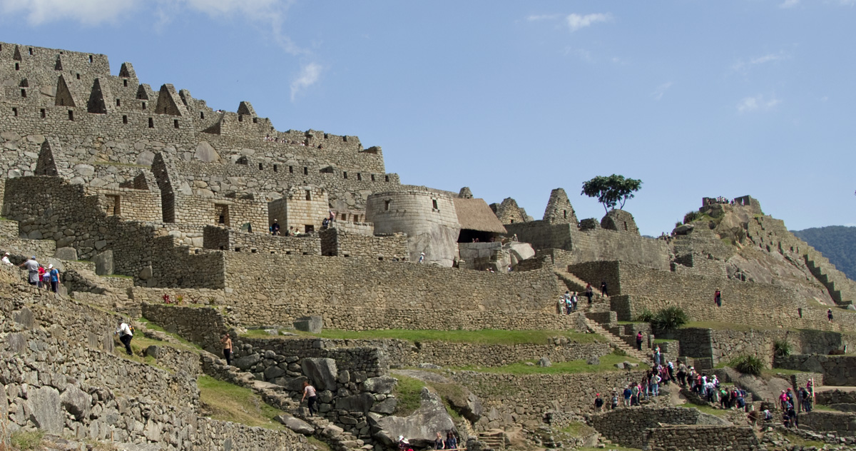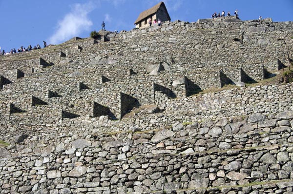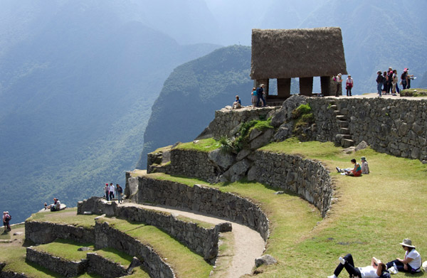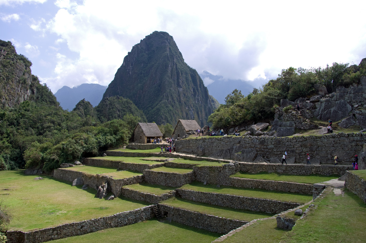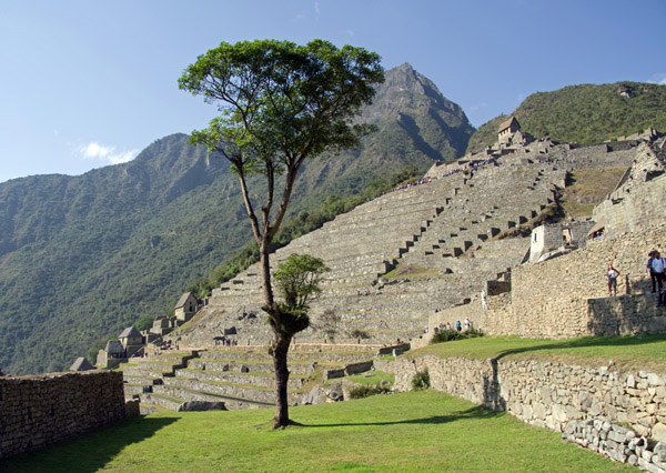 マチュピチュ村からシャトルバスで急な道を登り, 待望のマチュピチュ遺跡に入場。標高2500m程度で呼吸は苦しくない、日差しは強いが汗はあまりでない.