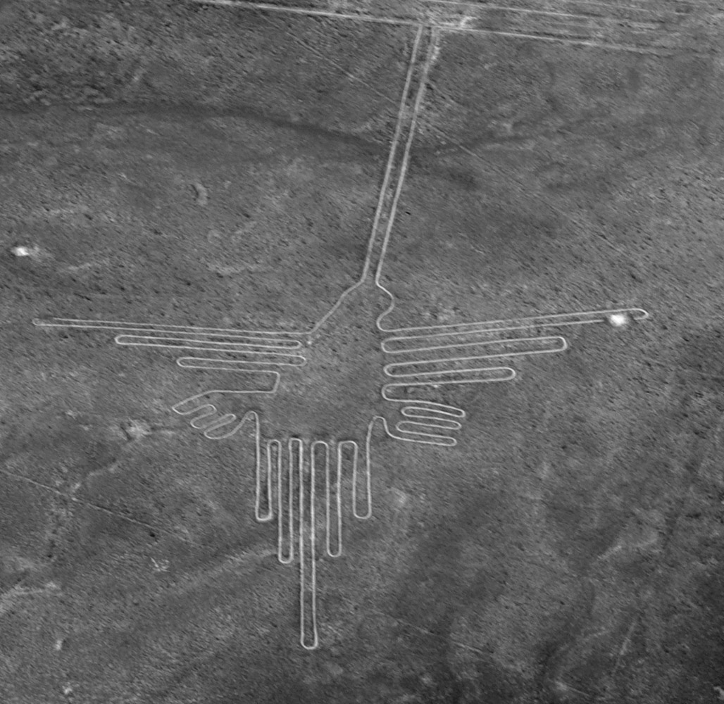 地上絵は思ったより小さく,水の流れた模様などに邪魔されて,飛行機からはなかなか見つけにくい.
