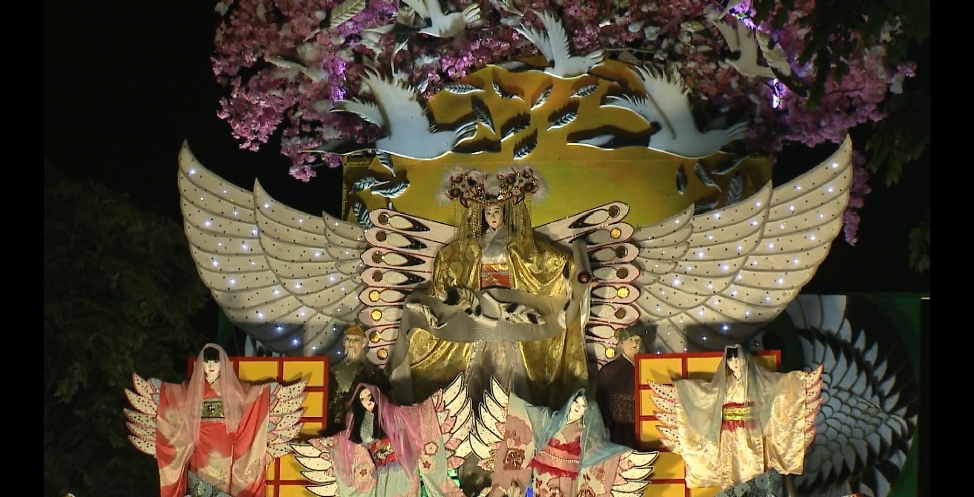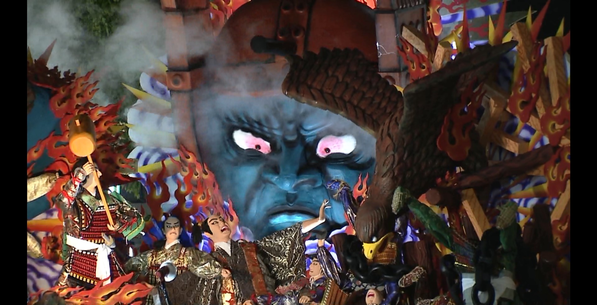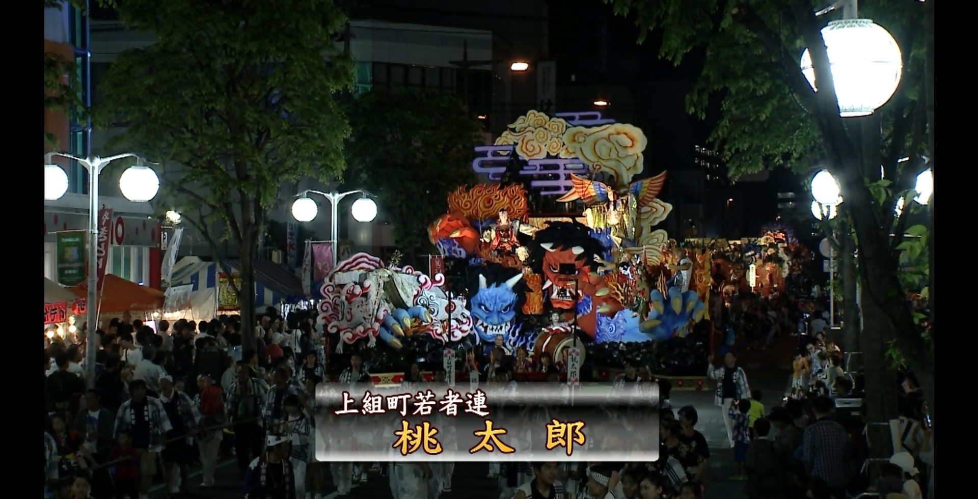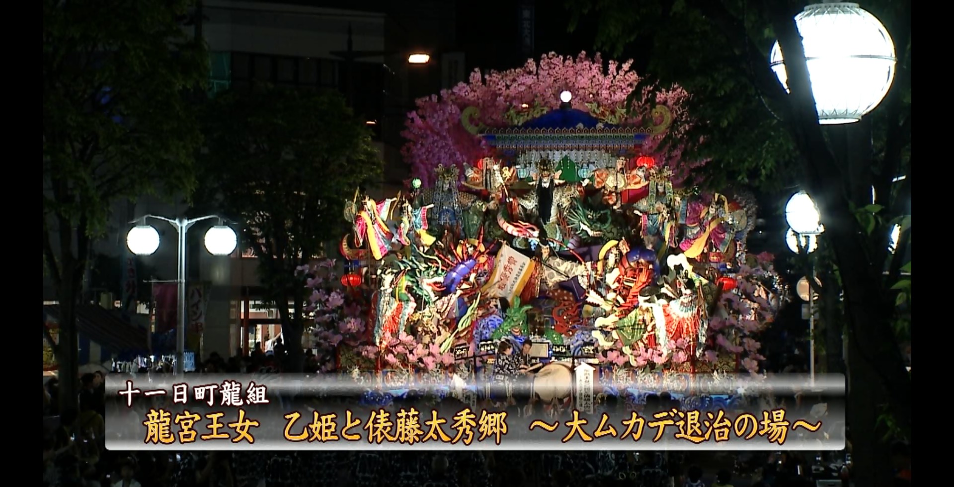 27輛の山車がライトに照らされ、妖艶な人形や動物や舞台の乗せたが山車が、お囃子ととも運行される。
