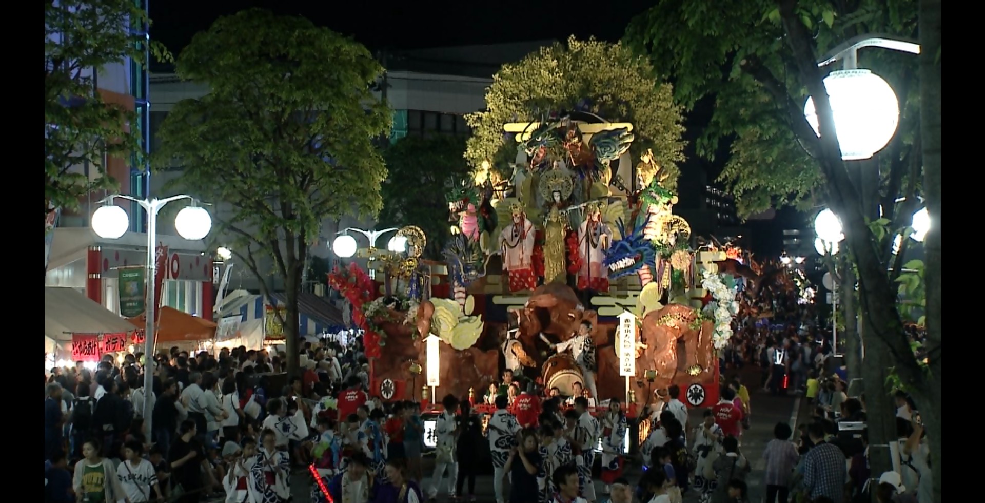 8月2日:中日(なかび)は山車の夜間合同運行、8月4日は後夜祭で山車の展示が行われる.