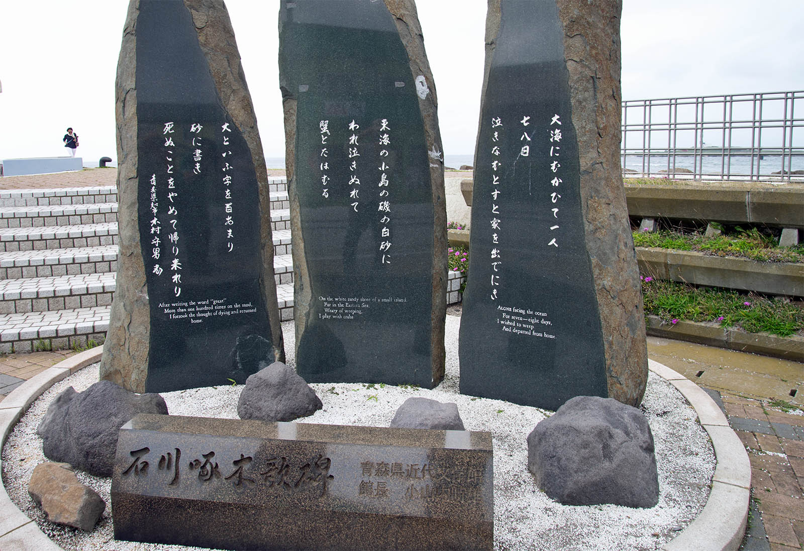 津軽海峡の向かいの函館・大森浜には、歌碑と石川啄木の座像が建立された小公園があり、東海といえば函館の海岸との説もある。大間啄木会の方は「啄木が大間の光景を東海歌に詠んだのはほぼ間違いない」として平成10年7月、大間崎に石川啄木歌碑が建立された。