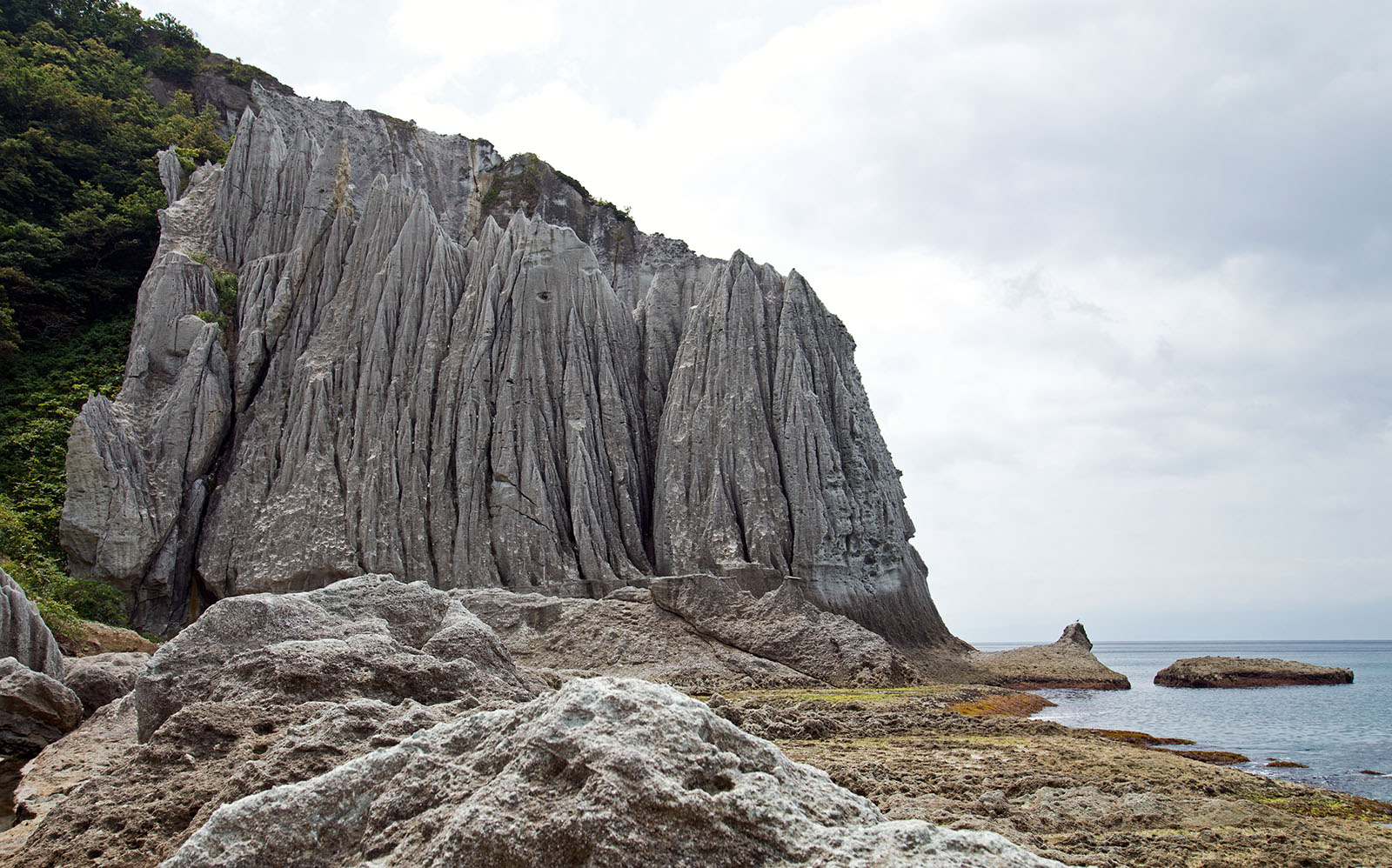 陸奥湾口の平舘海峡に面した峻険な海岸沿いに2km以上にわたり、奇異な形態の断崖・巨岩が連なる海蝕崖地形である。緑色凝灰岩を主とした岩石が数百万年をかけて、風雨、海蝕を受けて奇岩群が形成された。それぞれの奇勝には、浄土のイメージを重ねて「如来の首」「五百羅漢」「蓬莱山」「極楽浜」などの名が与えられている。90mを超える断崖もあるなど陸上から近付くのが困難な土地で、長らく地元民しか知らない秘境であった。1934年に青森県天然記念物、1941年4月23日には国の名勝および天然記念物に指定され(「仏宇陀(仏ヶ浦)」)、1968年には下北半島国定公園の一部となった。下北半島国定公園の一部である。陸から行くには山の上の駐車場から高低差100mの山道はかなりハードとのこと。観光船で行くのが楽ちん。