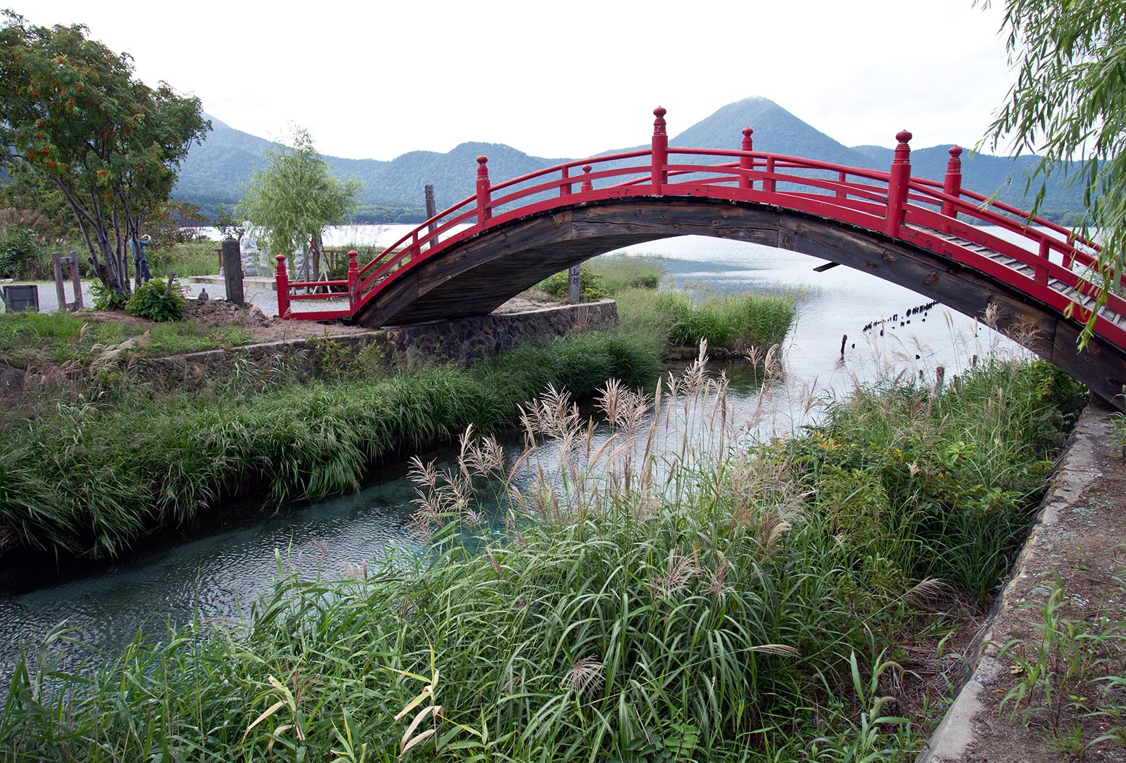 宇曽利湖の北東に流れ出ている三途の川は、霊界と俗界の境といわれ、朱塗りの太鼓橋が架かっています。