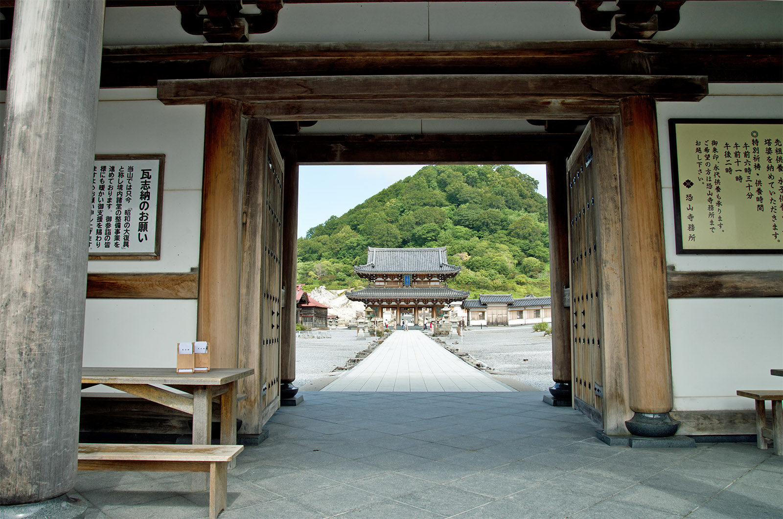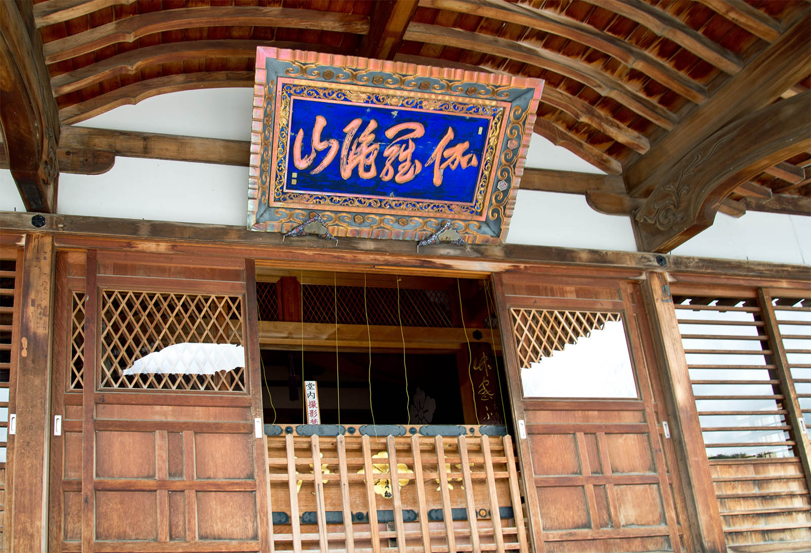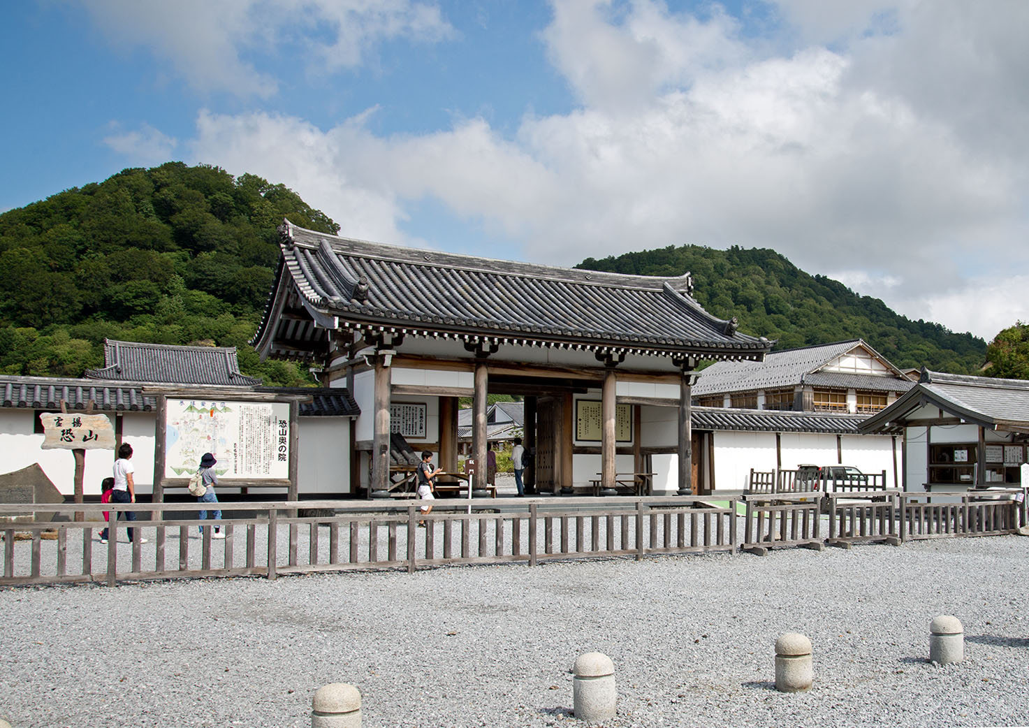 地蔵堂と境内、参道の右には大きな建物は宿坊。観光客も泊まることができる。