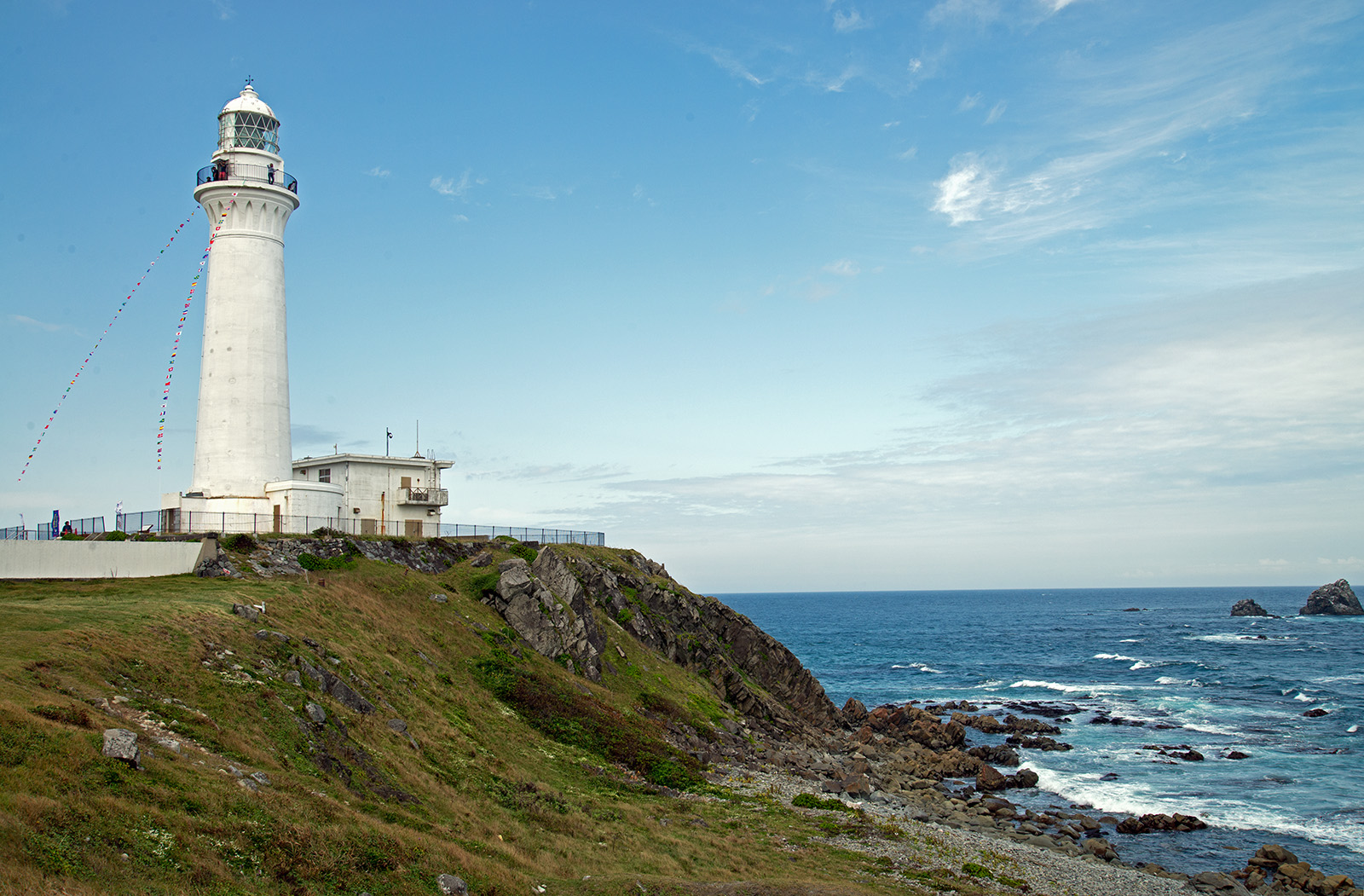 尻屋崎(しりやざき)は、青森県下北郡東通村にある、下北半島の北東端をなす岬である。岬の北側は津軽海峡、東側は太平洋で潮の変わり目であるため、海上交通の難所であった。明治9年にレンガ造りの白亜の尻屋崎灯台が建造された。「日本の灯台の父」と呼ばれるブラントンによって設計された二重のレンガ壁による複層構造の美しい灯台であり、日本の灯台50選に選ばれている。