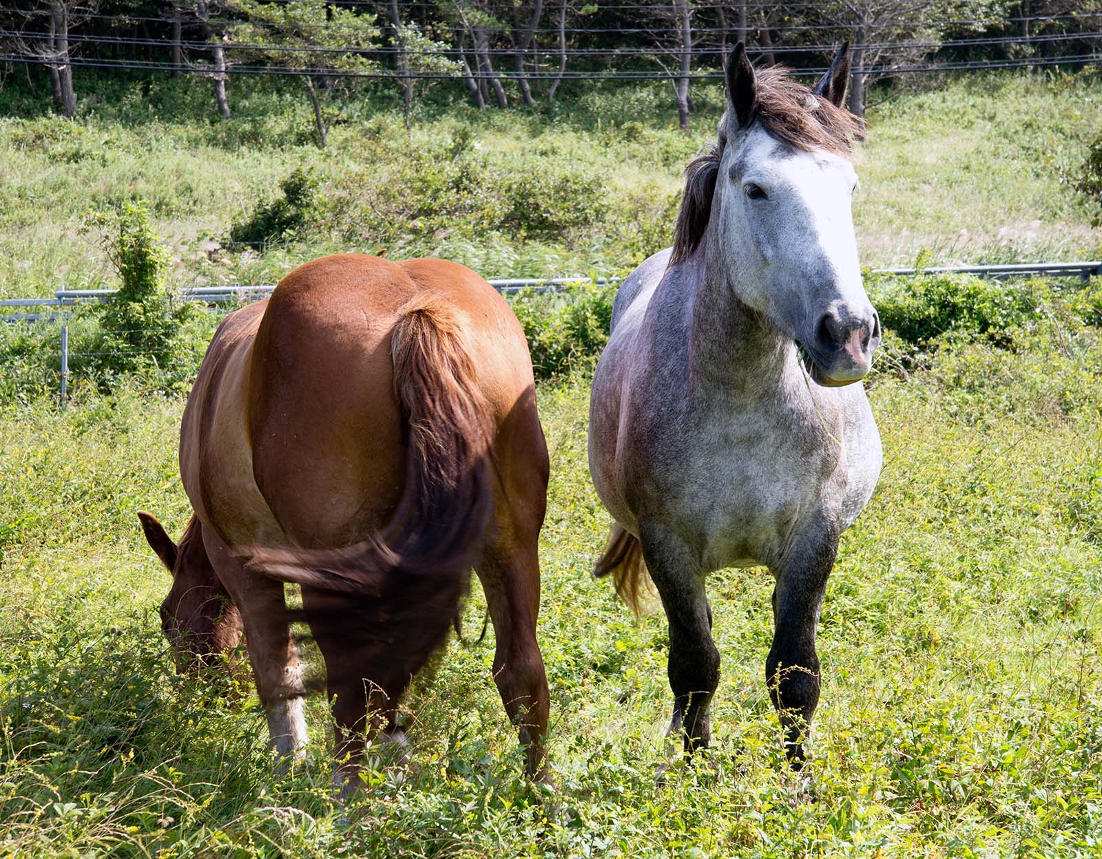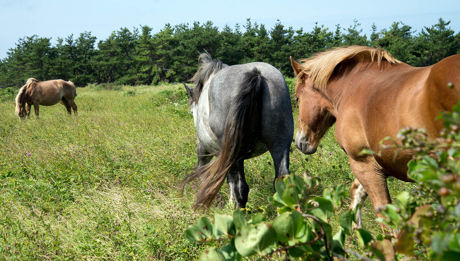 尻屋崎一帯には寒立馬(かんだちめ)という馬が放牧されており、観光の要所になっている。足が太く頑丈そうな体つきであるが、大人しく人間に慣れてている。このあたりは下北半島国定公園に指定されている。尻屋崎への道にはゲートが設けられており、夜間と冬期は閉鎖される。