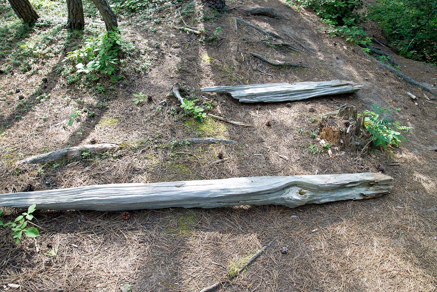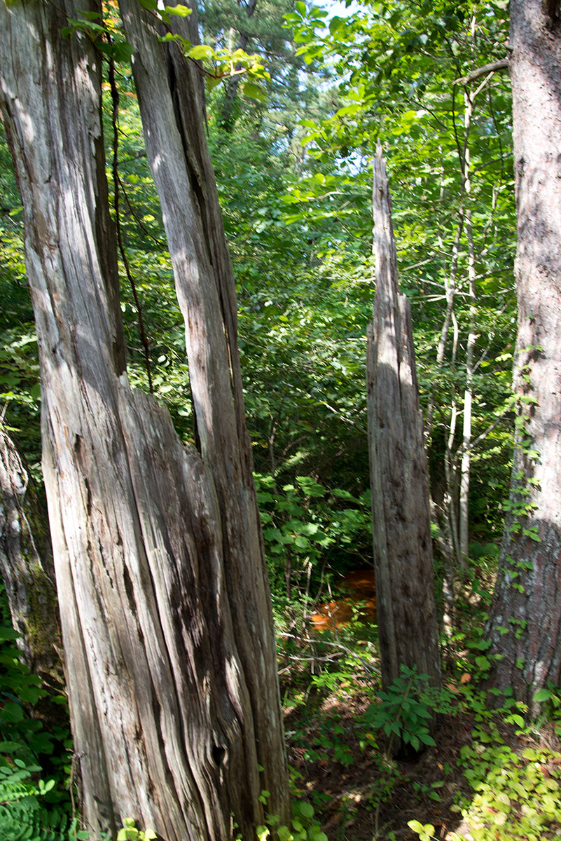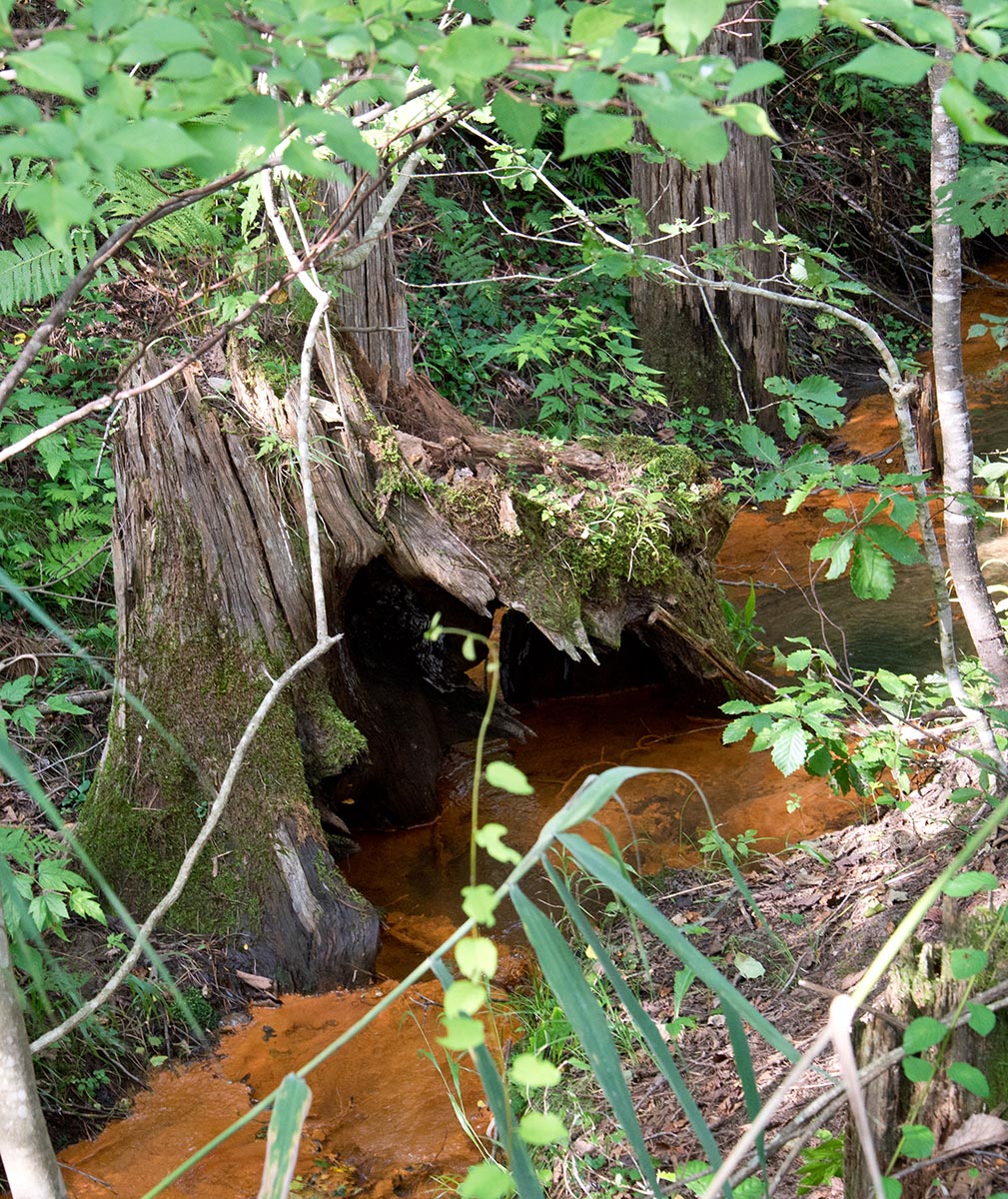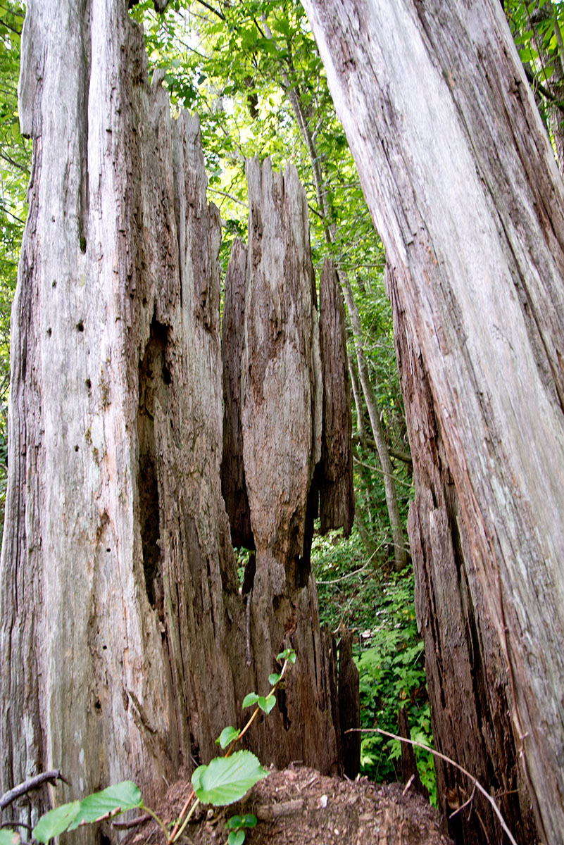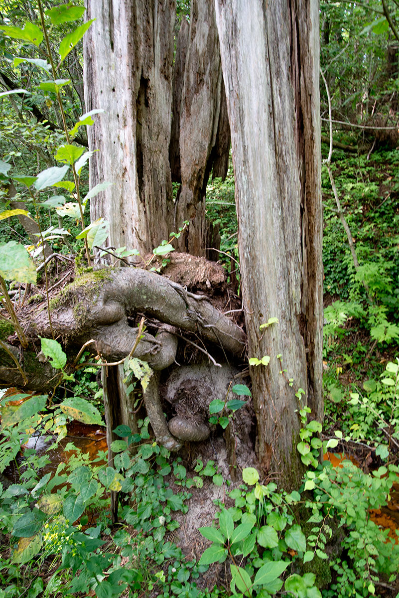 川沿いに左に歩くと多数の埋没ヒバに出会えます。