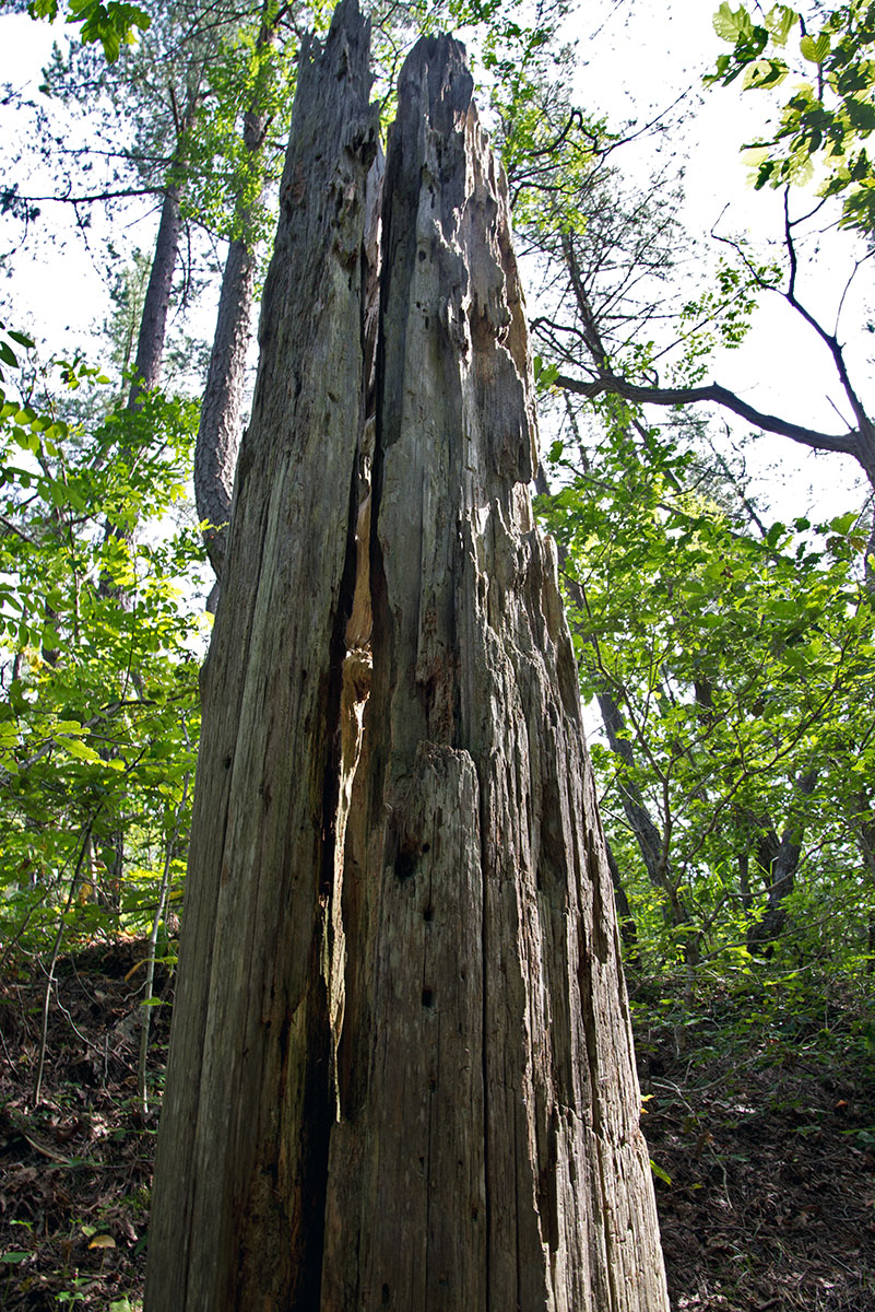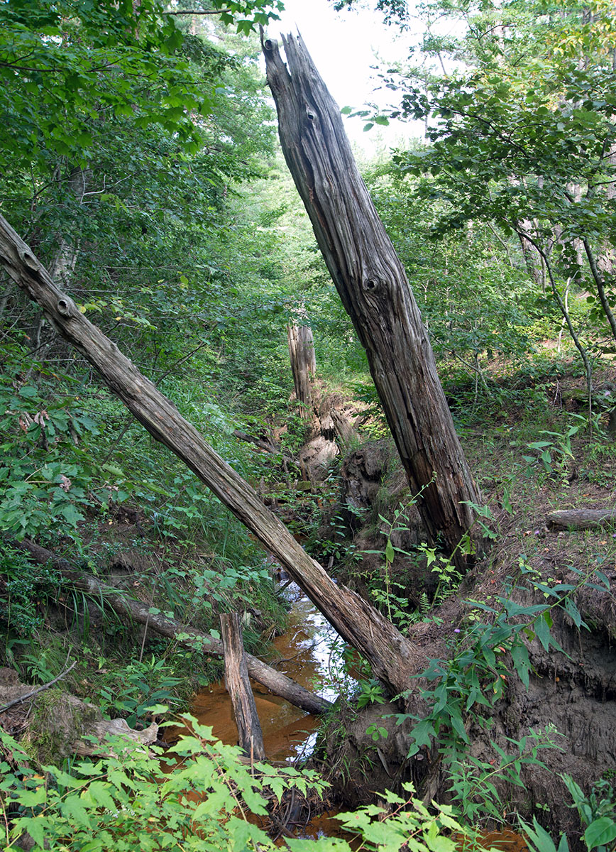 まず、この橋から左を見てください。埋没ヒバの光景が見られる。