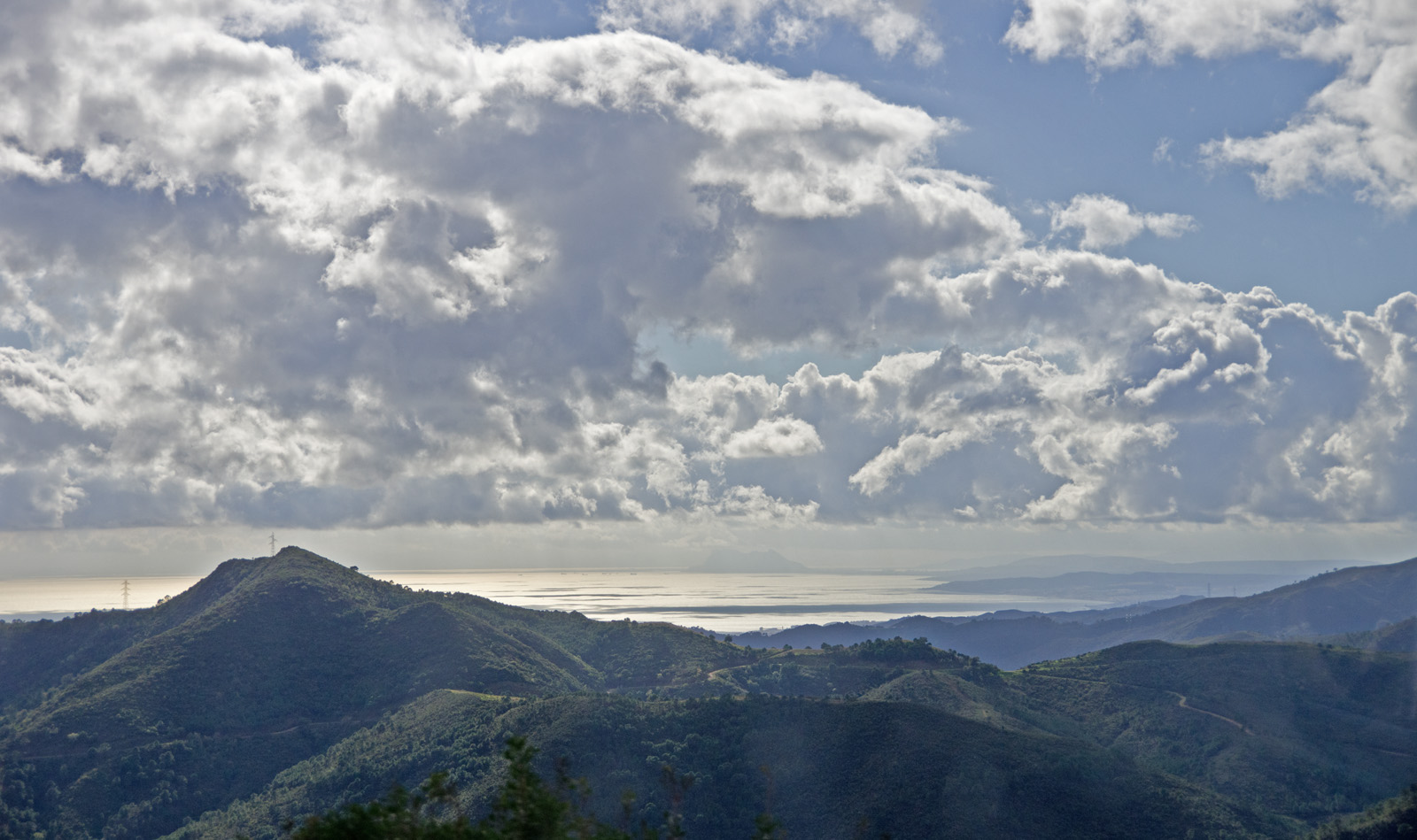 ジブラルタル海峡と北アフリカ 中央に微かに見える
