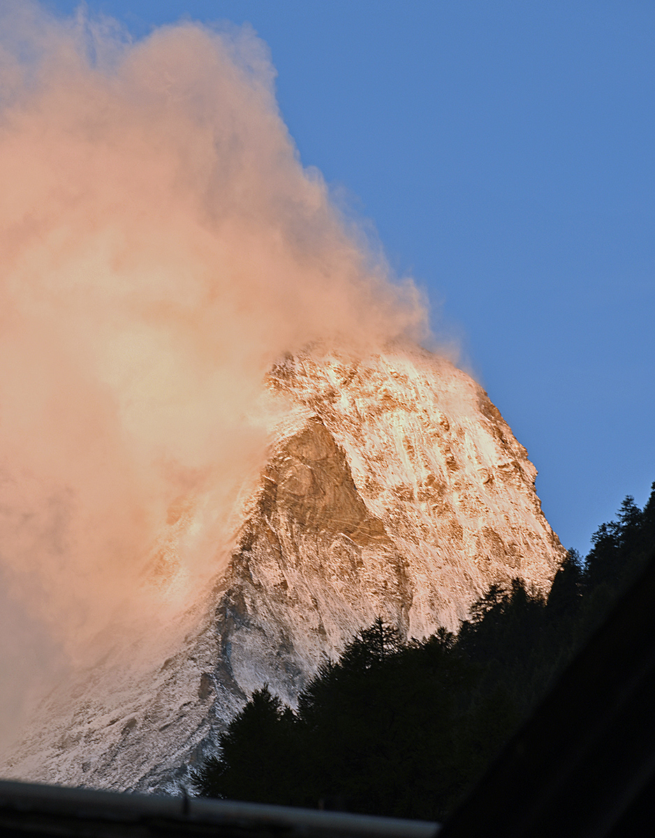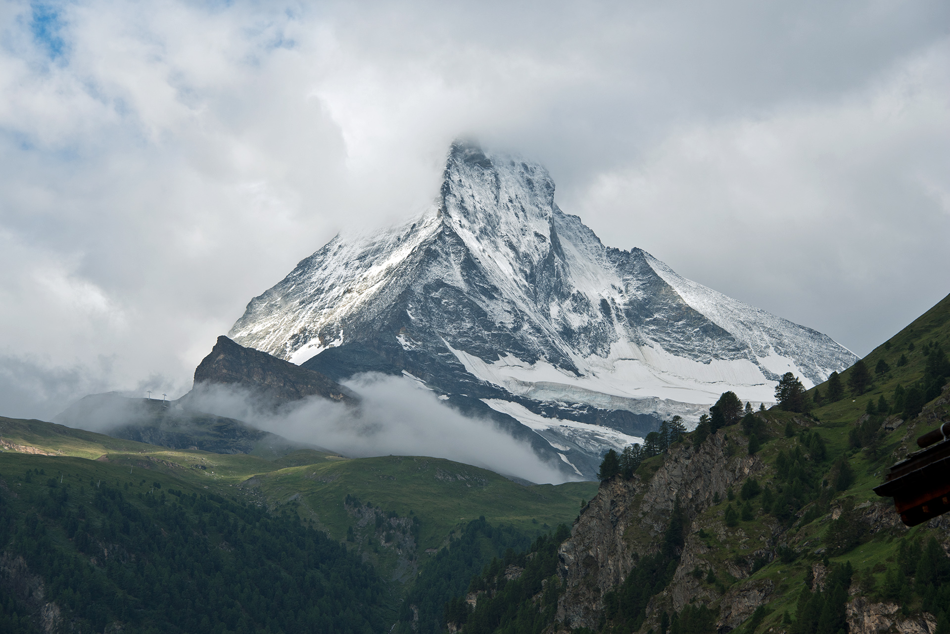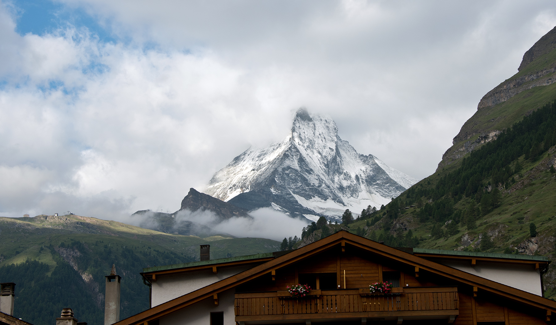 ツェルマットから見たマッタホルン(ほとんど頂上まで見えているが)