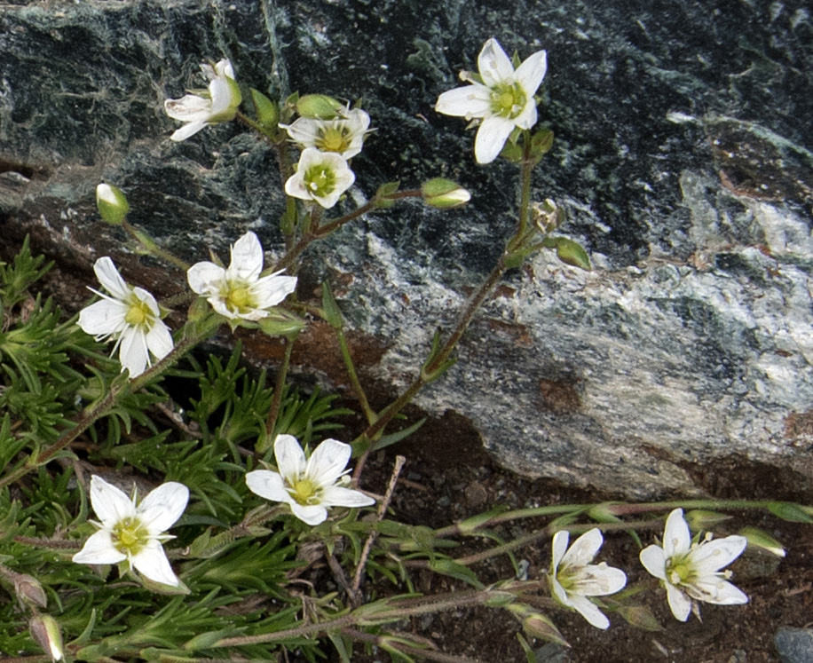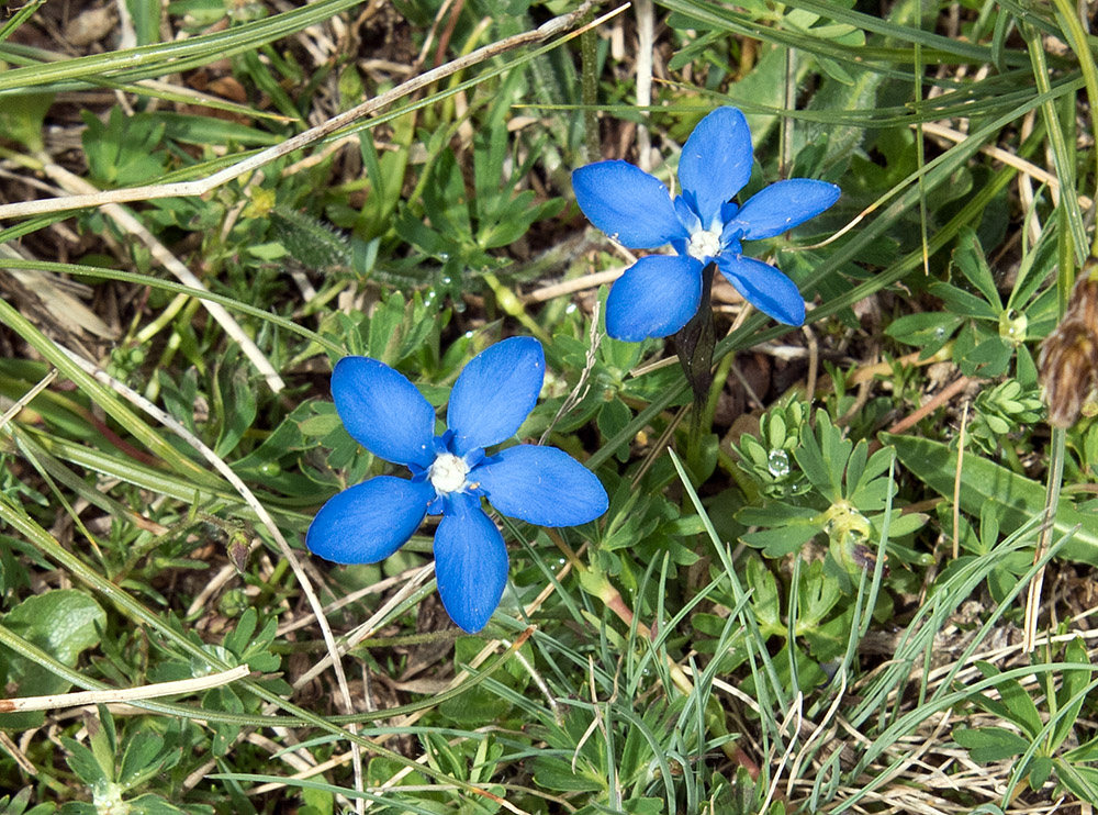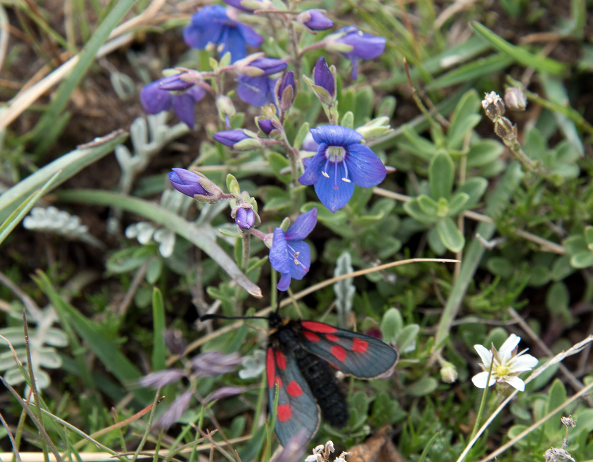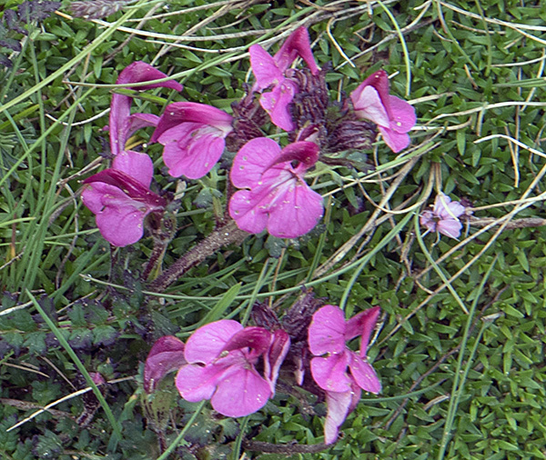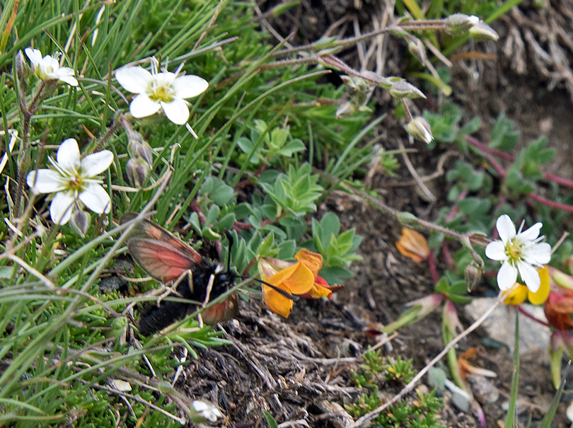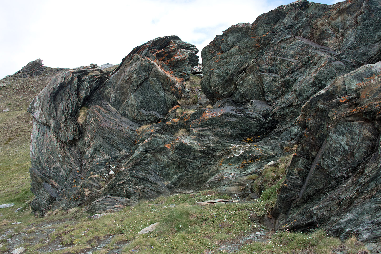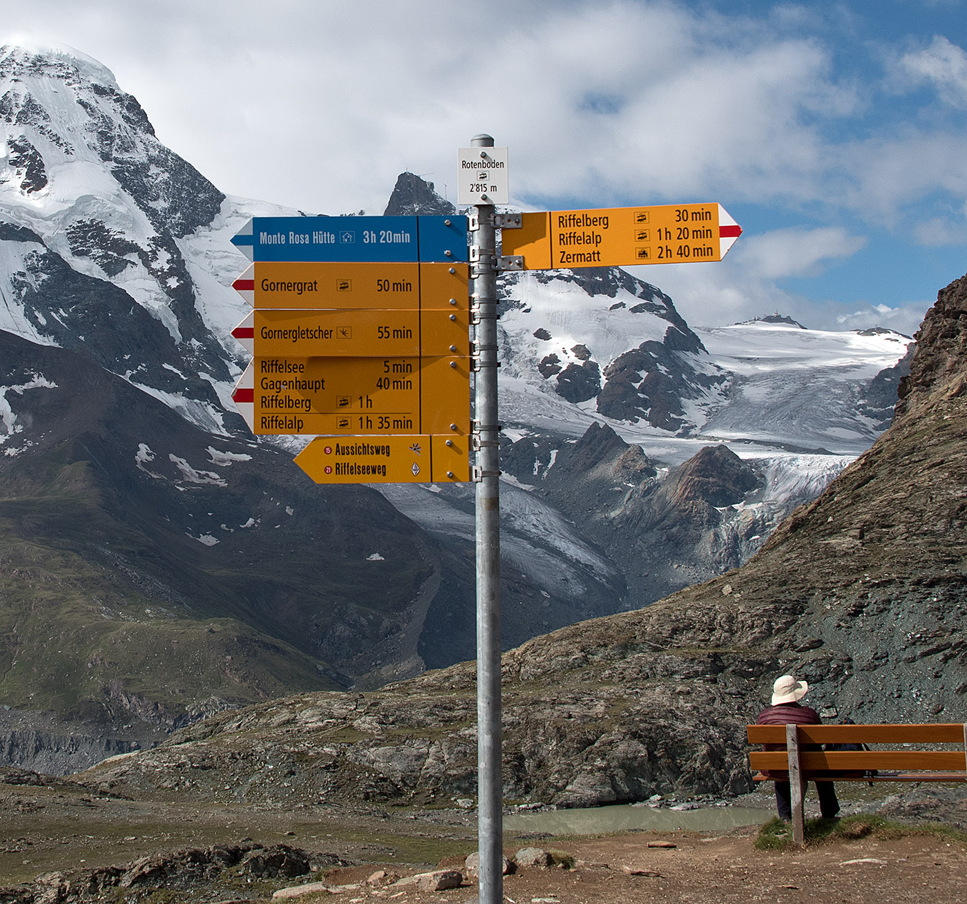 ローテンボーデンで登山電車を下車し、リフェル湖で水面に映るマッタホルンなど峰峰を眺め、高山の花花を楽しみながら、リッフェルべルグ駅まで下る。(約1時間30分の緩やかな下り)一面に咲いている花を踏まないように注意して歩く。アルパイン・マーモットの生息地を下るが、出会うことはなかった。