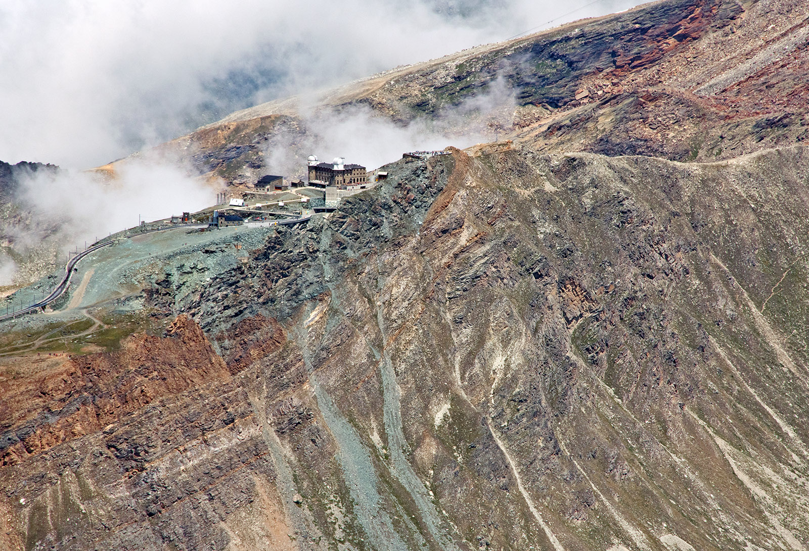グレイシャーパラダイス展望台の拡大 標高3833mでヨーロッパ一高い、富士山より高い