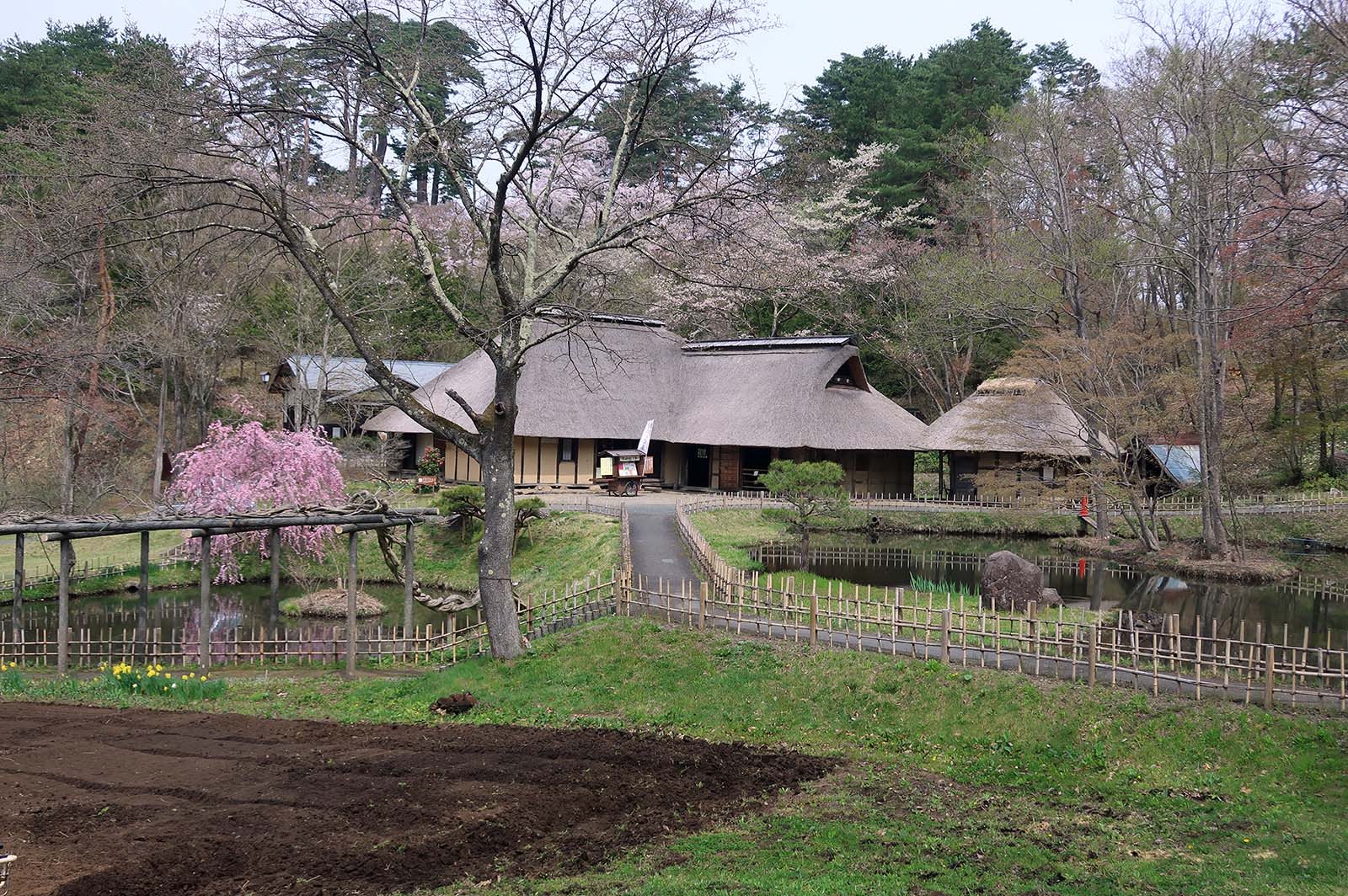 北上市にある北上川流域の古民家を集めた野外博物館。江戸時代(1603?1868)から明治時代(1868?1912)を中心に、茅葺の商家や農家、番所、女学校の校舎など計29棟が移築・復元されている。縄文時代(紀元前14,000 年頃?紀元前300年頃)から平安時代(794?1185)、室町時代(1336?1573)の竪穴住居や、昭和(1926?1989)の時代にも使われていた炭焼き小屋などもあり、山間の約7ヘクタールに及ぶ園内は、この地域の昔の姿をほうふつとさせる懐かしい雰囲気が漂う。復元された民家は、母屋と馬屋をカギ形に付けたL字型の住宅が特徴で「曲り屋」と呼ばれる。